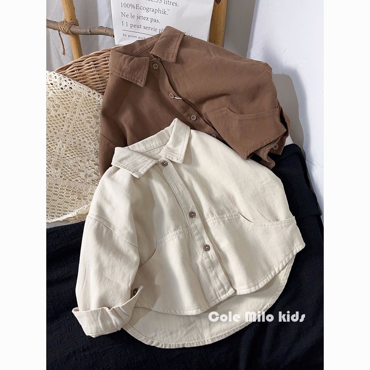 문학 스타일 한국식 소년 셔츠 긴팔 봄과 가을 2023 새로운 스타일 여아 셔츠 아기 탑 어린이 가디건스토어 가기