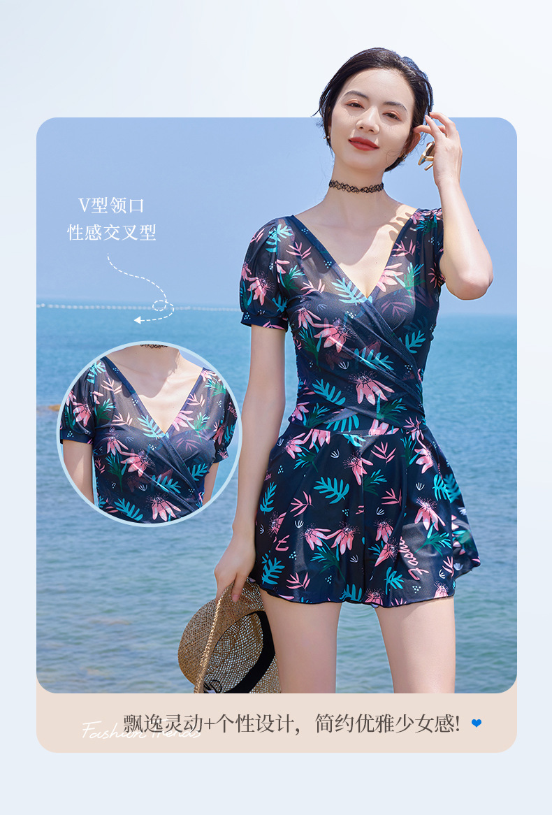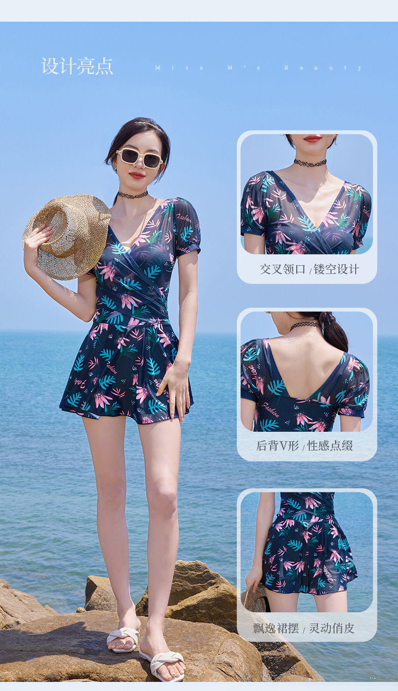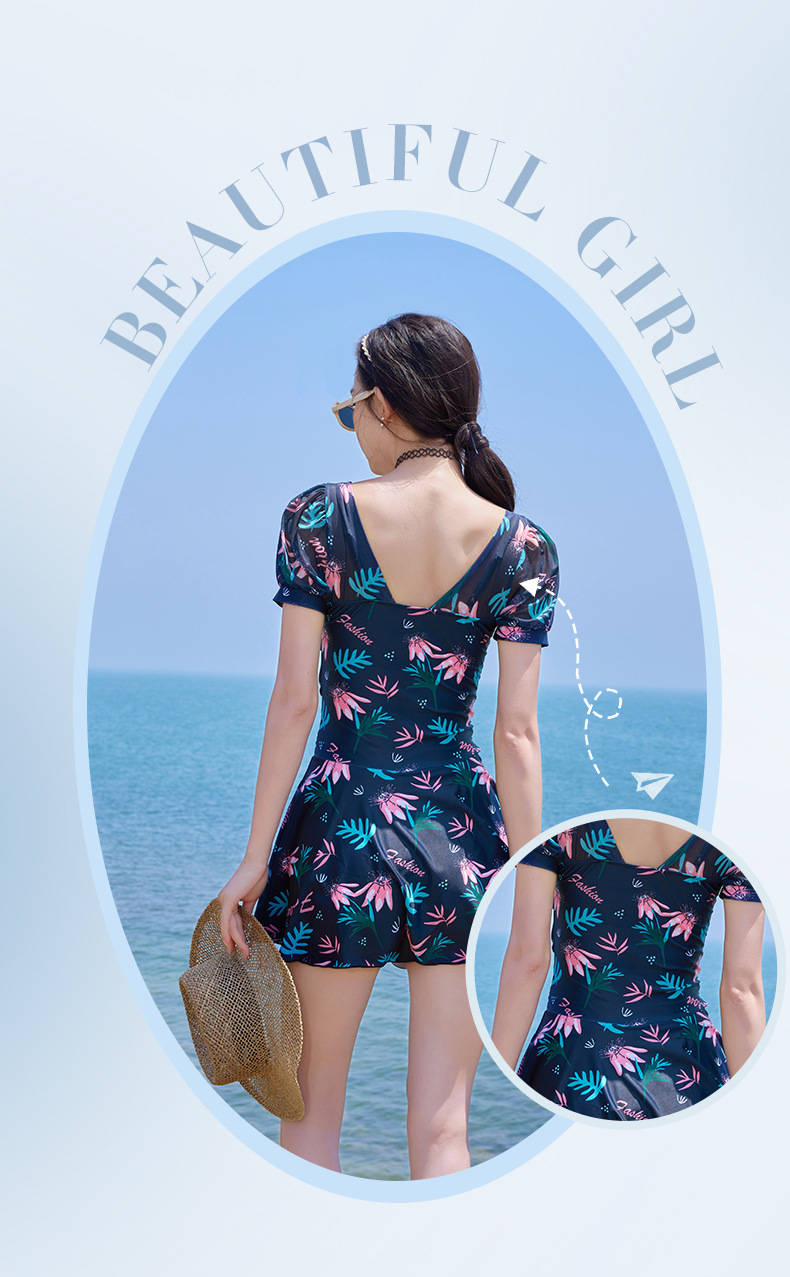 호텔 온천 여성 수영복 패션 원피스 안전 바지 인쇄 수영복 하이 웨이스트 슬리밍 수영복 해변 휴가