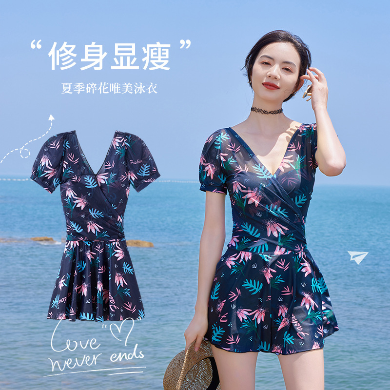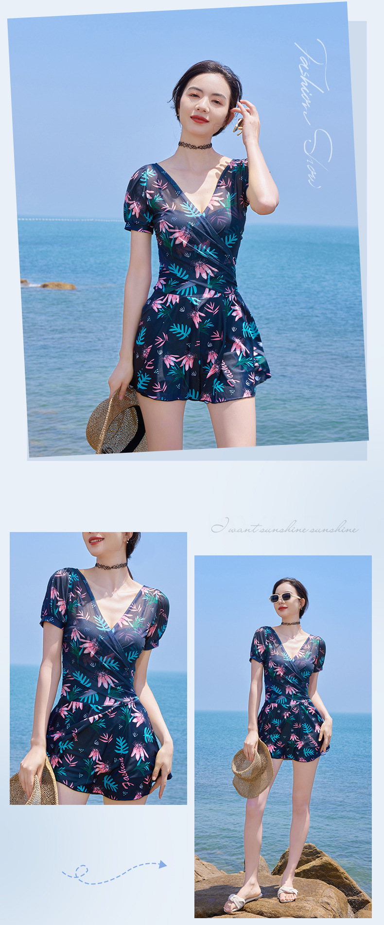 호텔 온천 여성 수영복 패션 원피스 안전 바지 인쇄 수영복 하이 웨이스트 슬리밍 수영복 해변 휴가스토어 가기