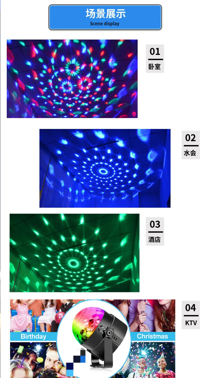 국경 원격 제어 브래킷 작은 마법의 공 LED 회전 다채로운 레이저 빛 크리스탈 KTV 레이저 마법의 공 빛 분위기 무대스토어 가기
