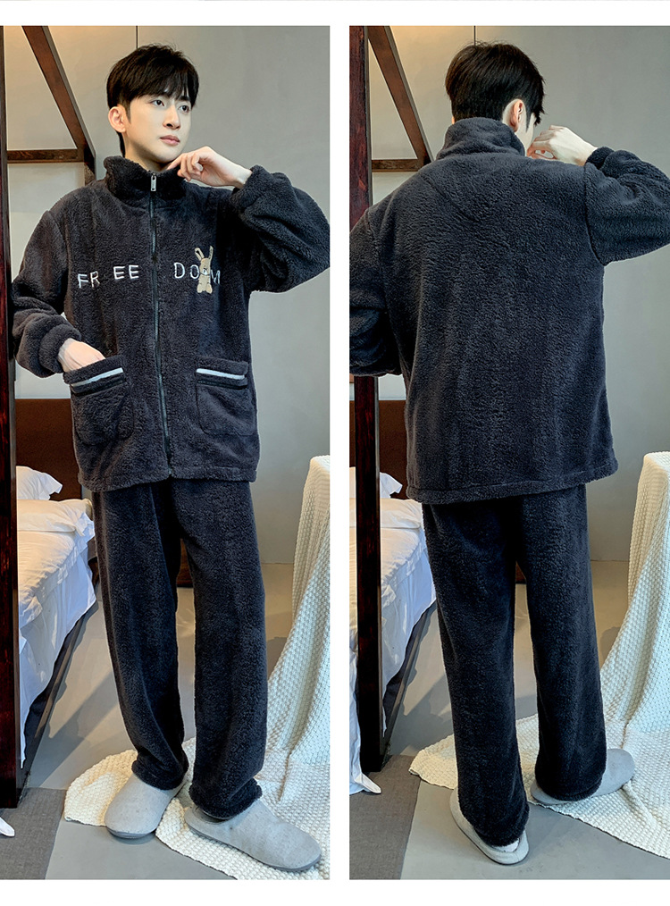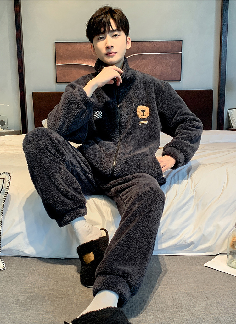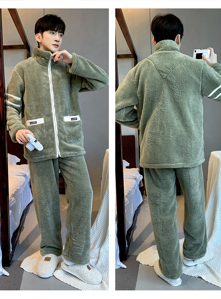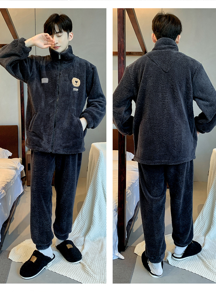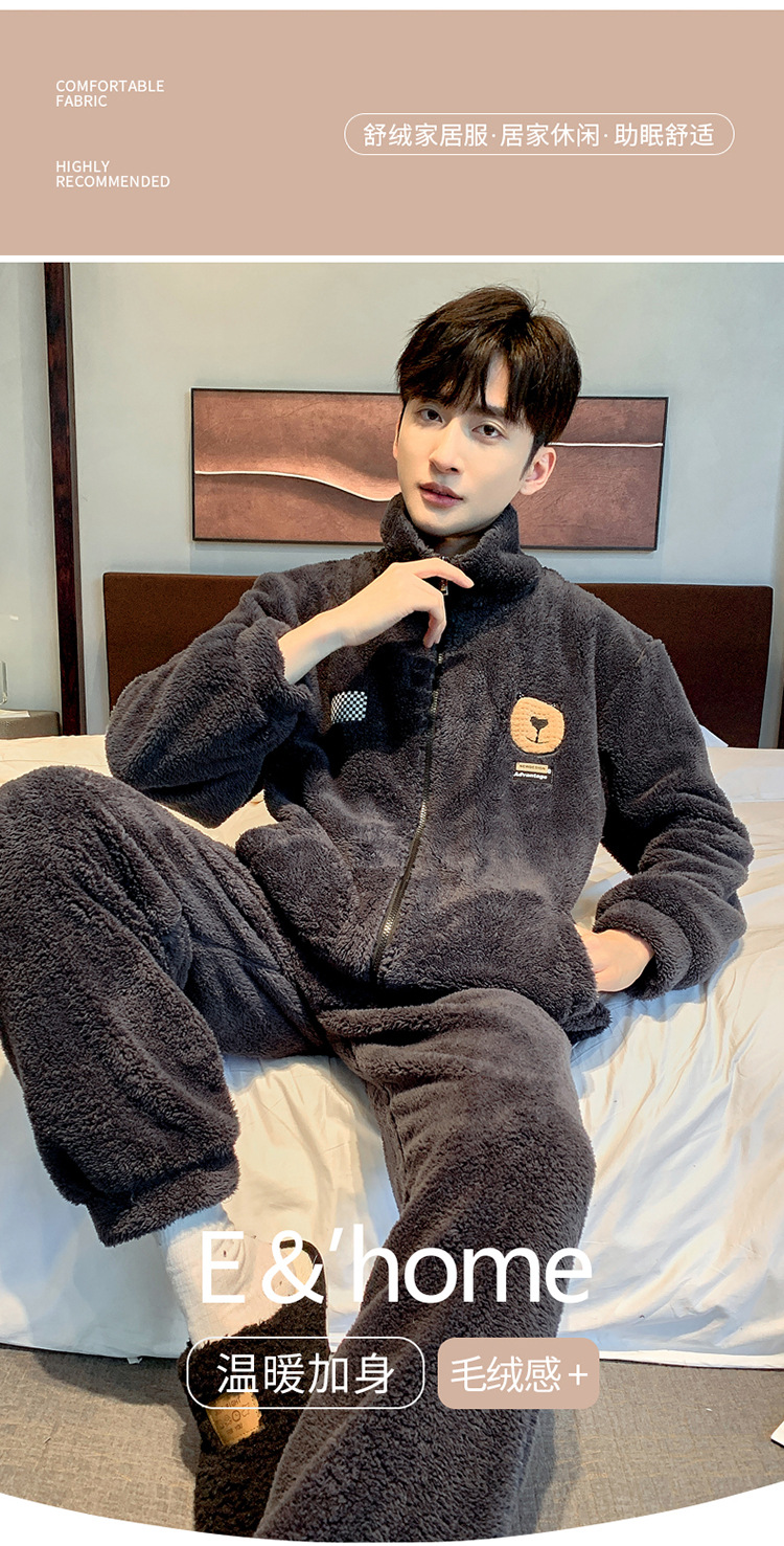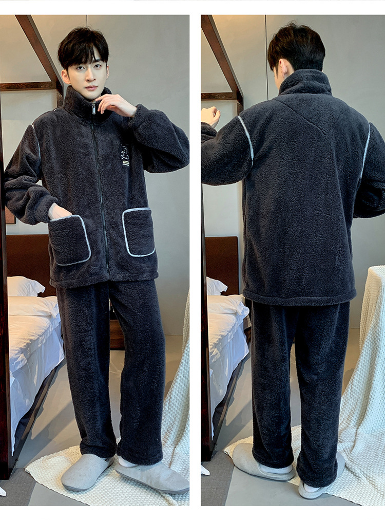 겨울 새로운 지퍼 하이 칼라 남자의 플러스 사이즈 플란넬 겉옷을 입고 긴 소매 바지 산호 양털 따뜻한 가정 옷