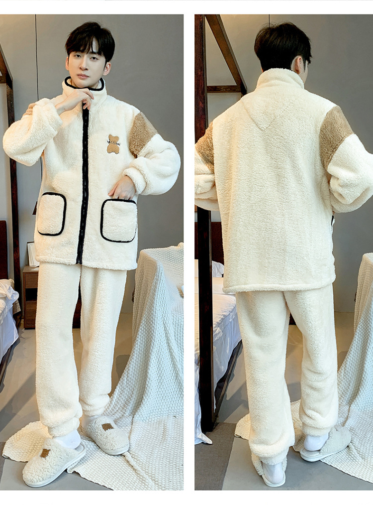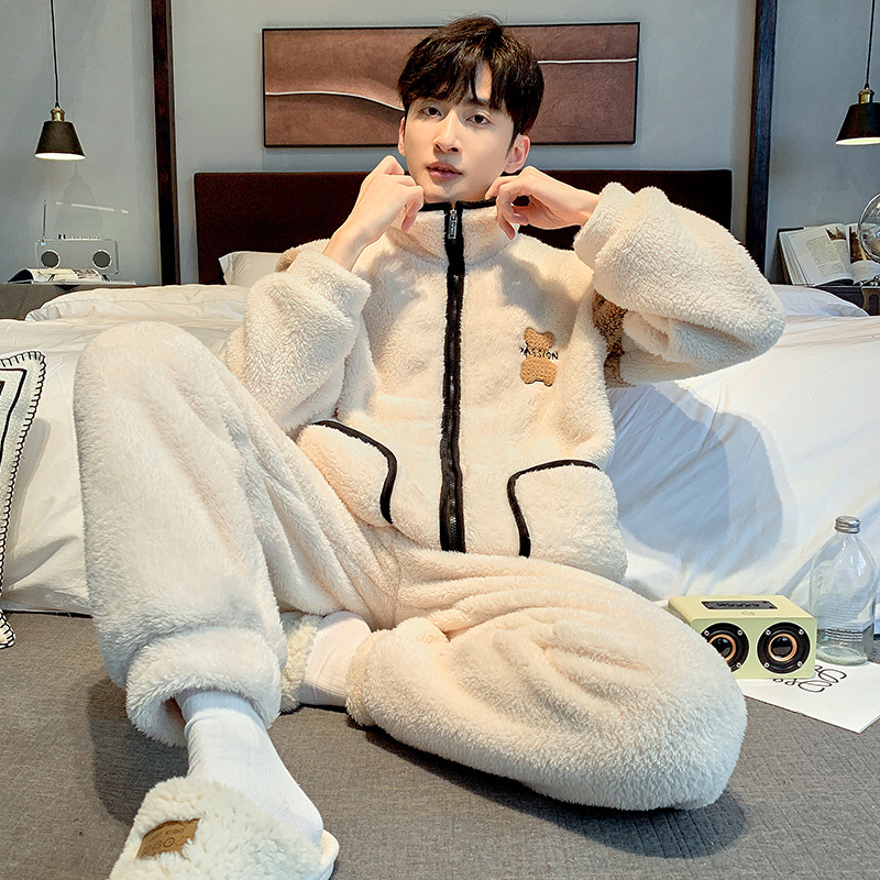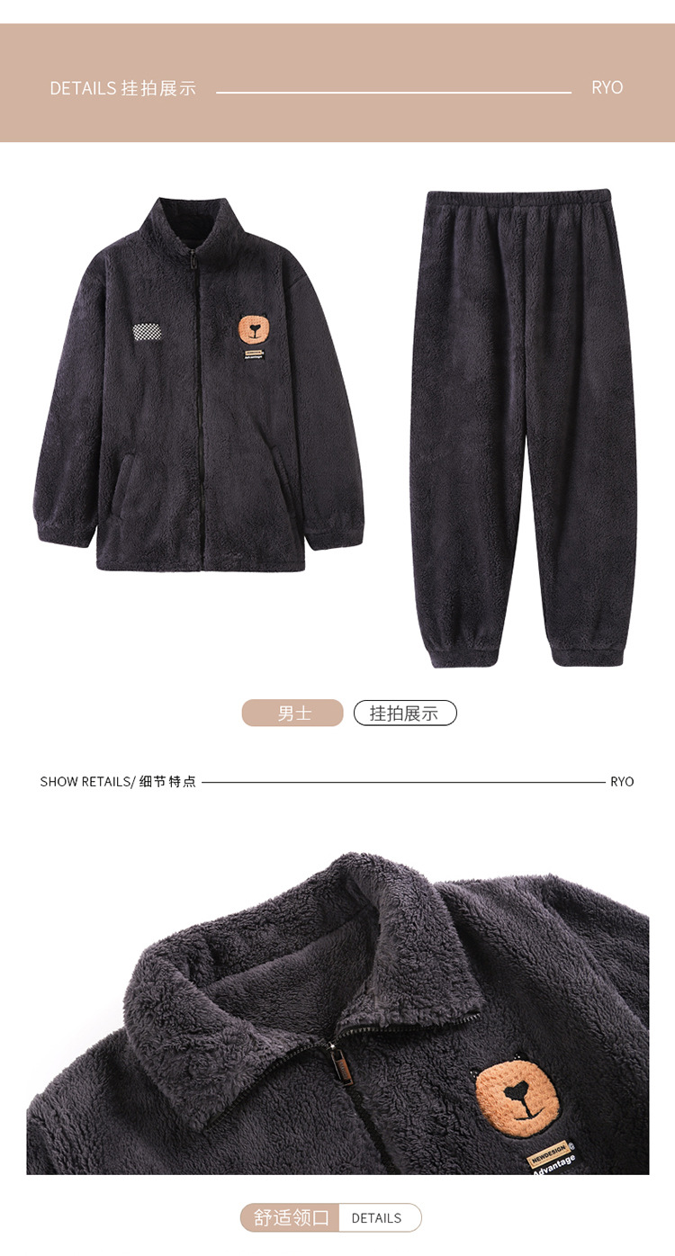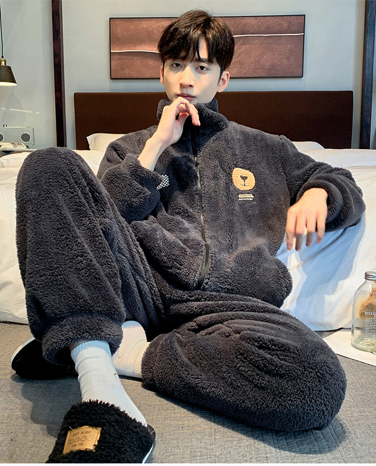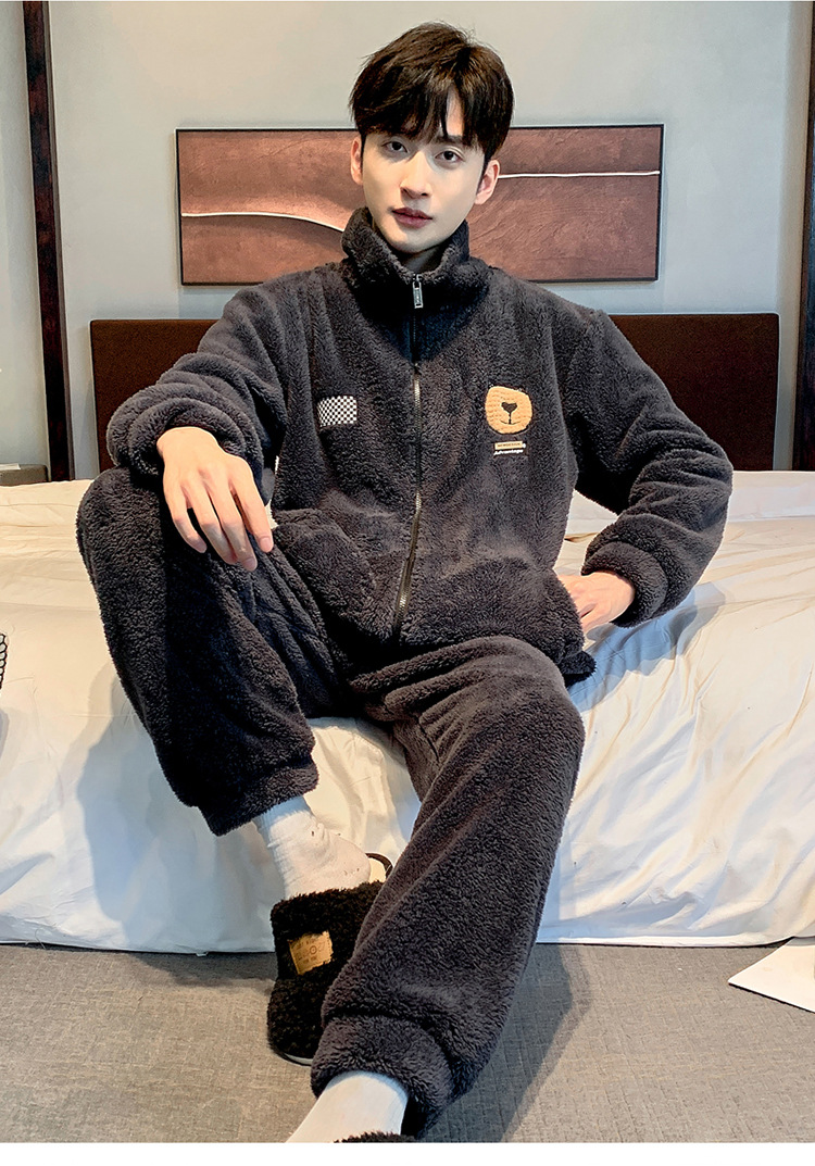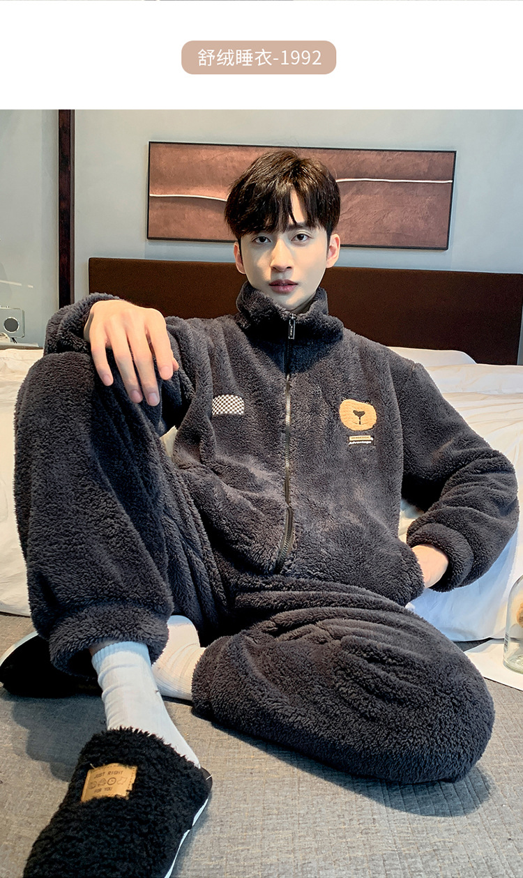겨울 새로운 지퍼 하이 칼라 남자의 플러스 사이즈 플란넬 겉옷을 입고 긴 소매 바지 산호 양털 따뜻한 가정 옷