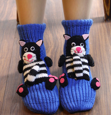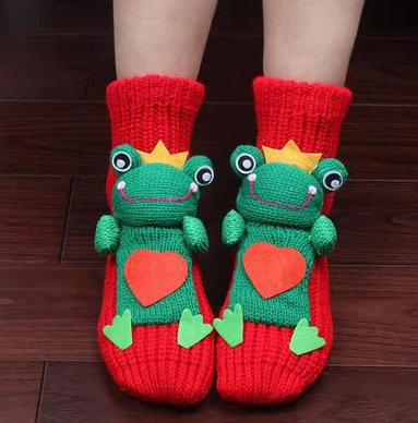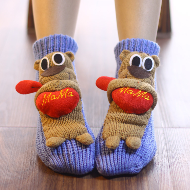 만화 양모 바닥 양말 미끄럼 겨울 따뜻한 발 유물 여성 집 귀여운 두꺼운 두꺼운 실 성인 크리스마스 양말스토어 가기