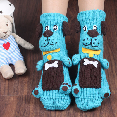 만화 양모 바닥 양말 미끄럼 겨울 따뜻한 발 유물 여성 집 귀여운 두꺼운 두꺼운 실 성인 크리스마스 양말