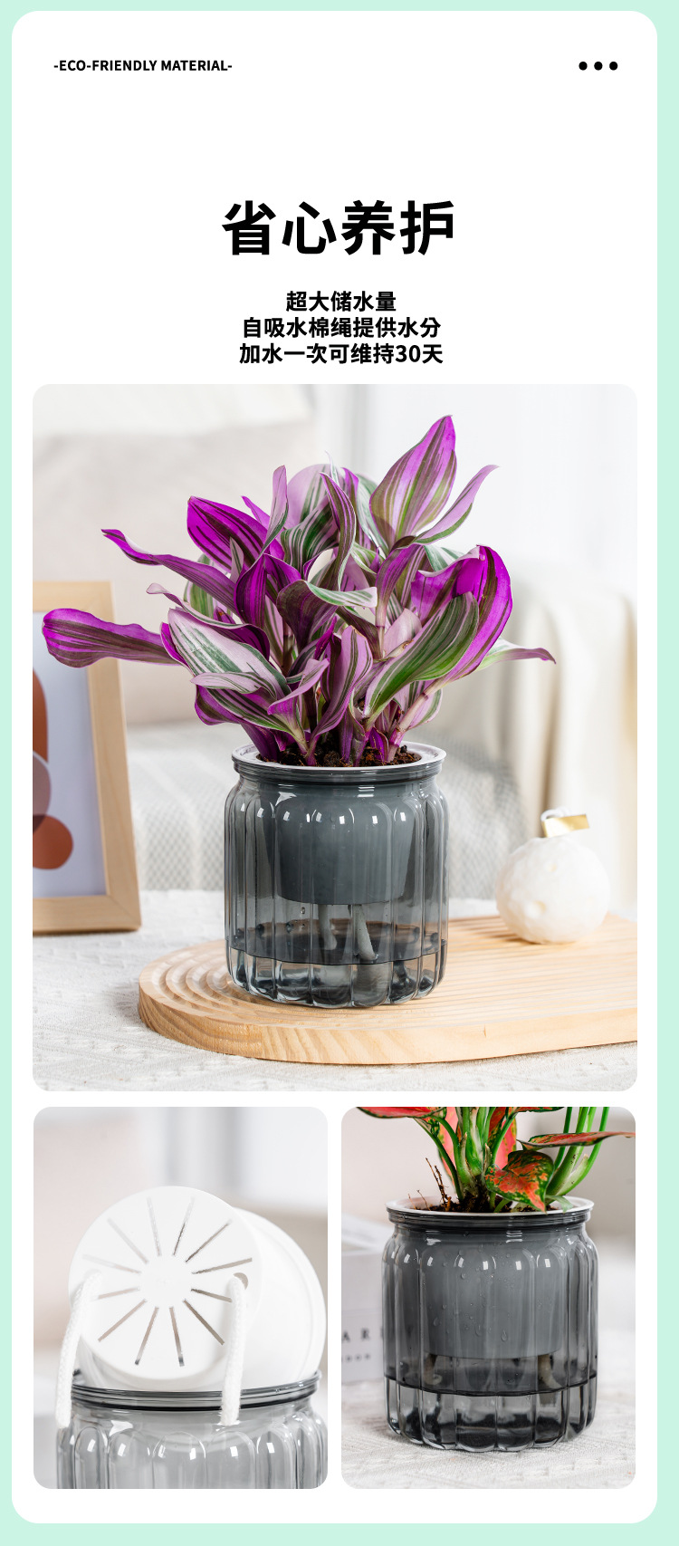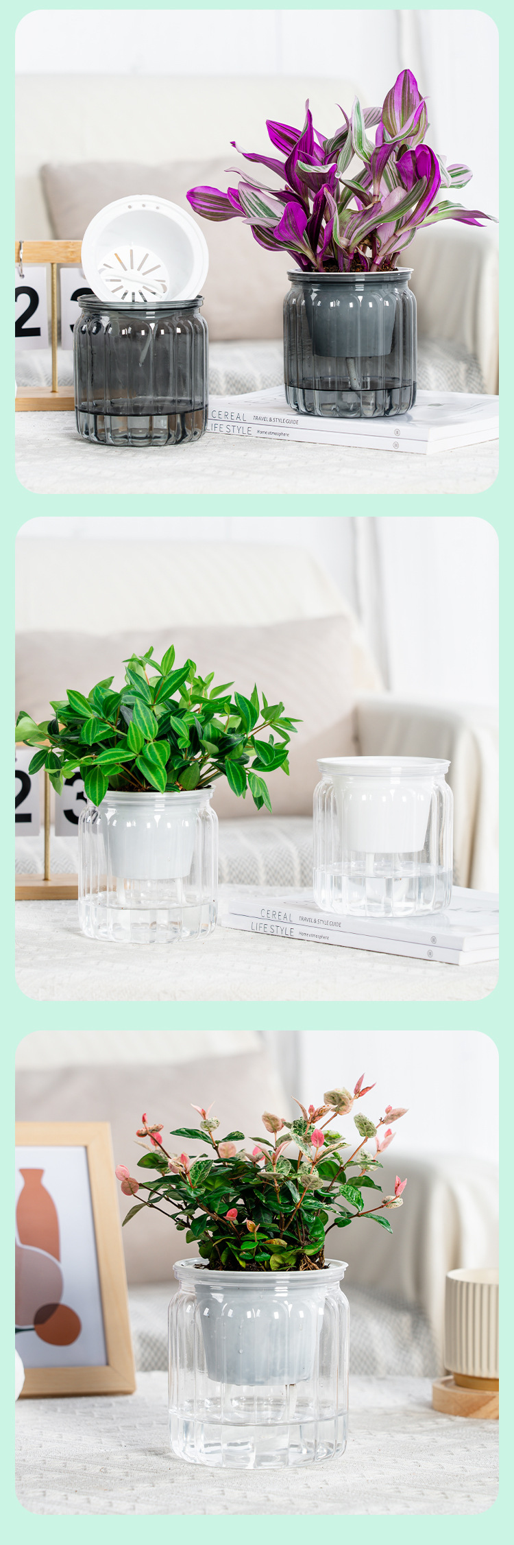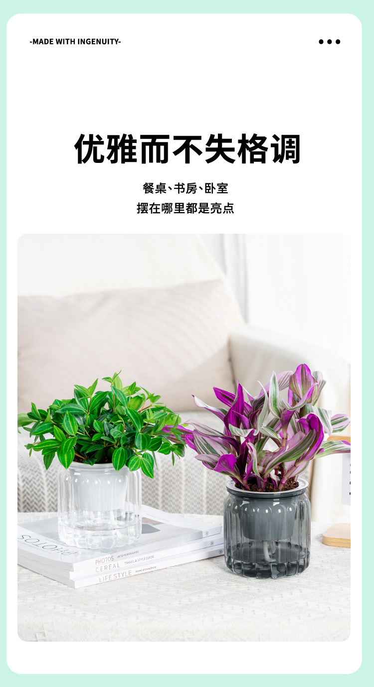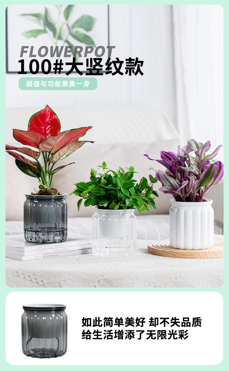 새로운 자기 흡수 게으른 투명 흡수 화분 크리에이티브 데스크탑 수지 화분 원예 분지 컬러 공장 도매