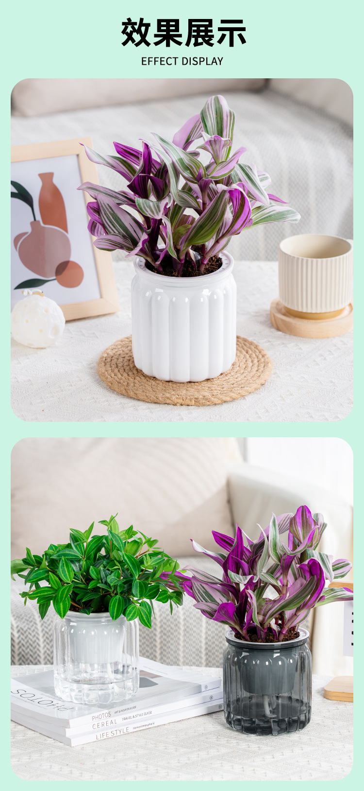 새로운 자기 흡수 게으른 투명 흡수 화분 크리에이티브 데스크탑 수지 화분 원예 분지 컬러 공장 도매스토어 가기