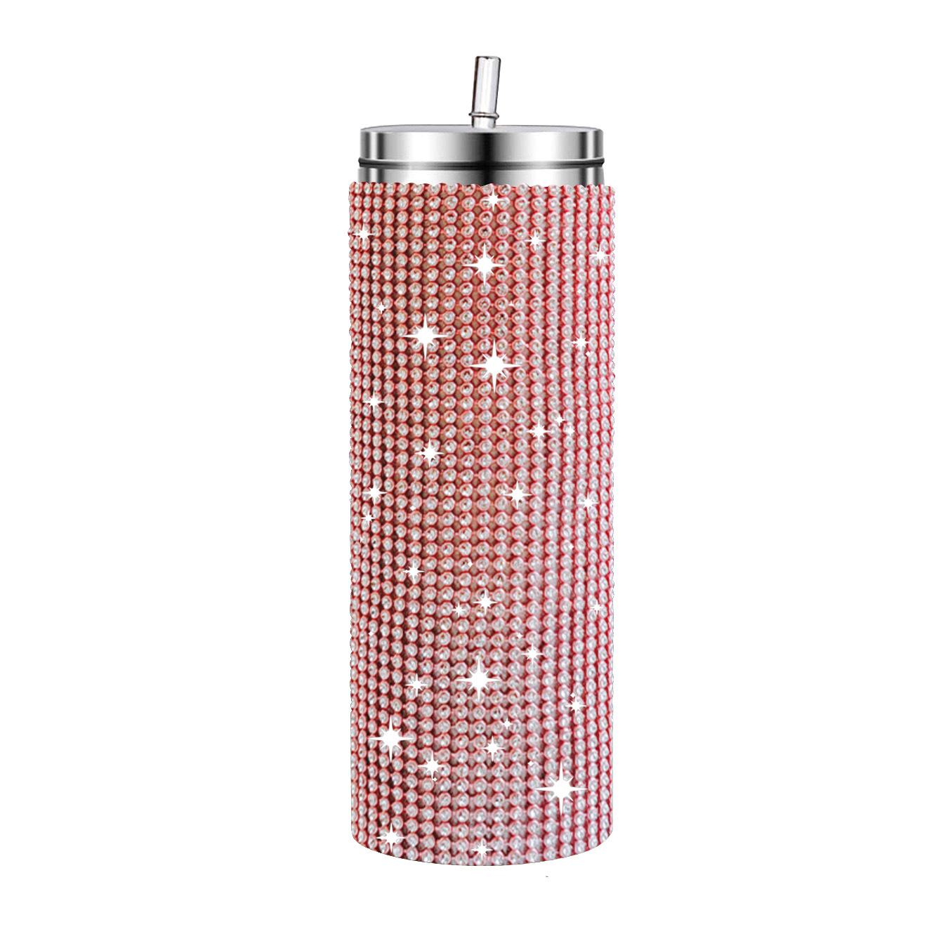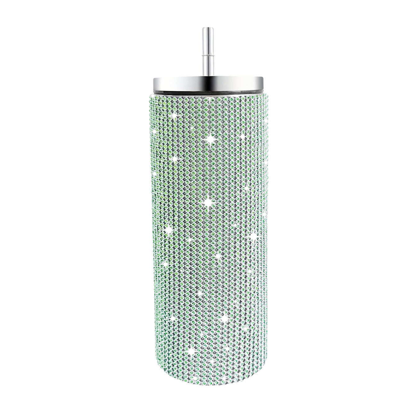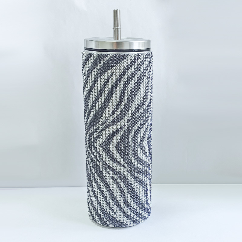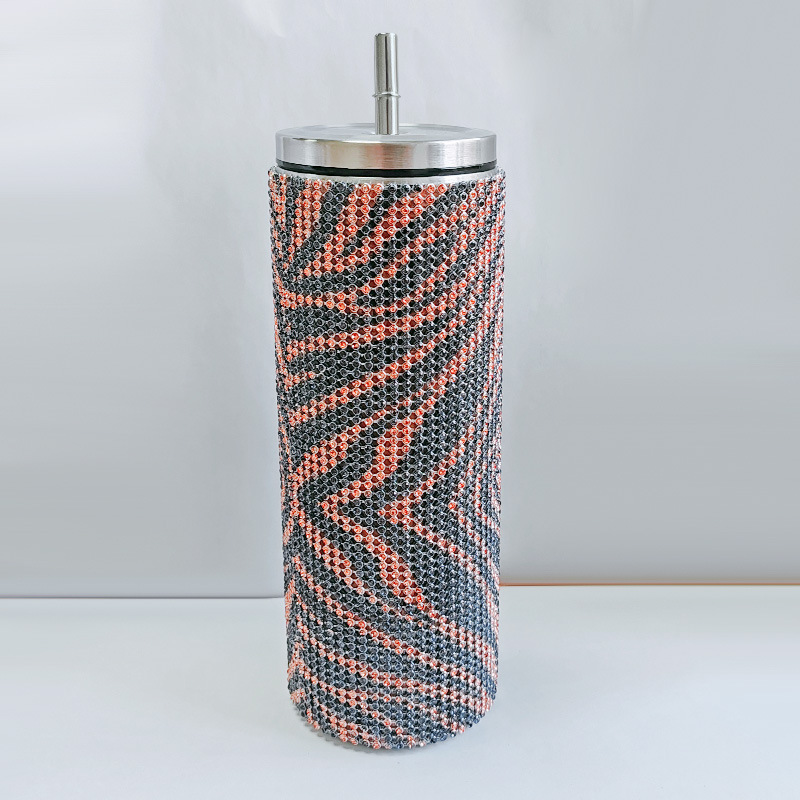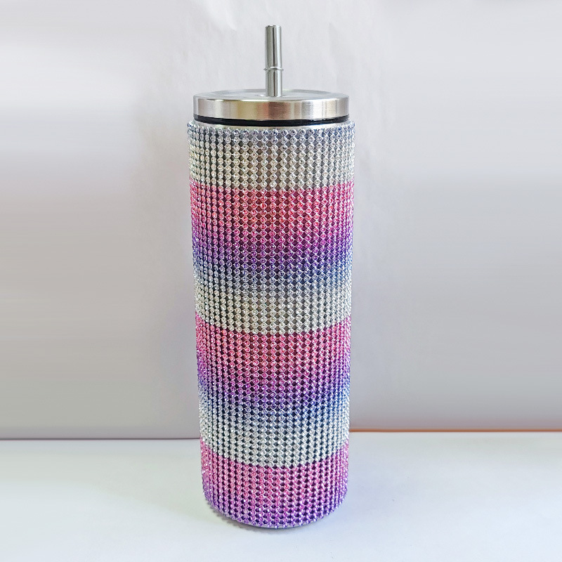 크로스 보더 아마존 20 온스 다이아몬드 박힌 스트레이트 바디 보온병 스테인레스 스틸 진공 흡입 튜브 컵 휴대용 자동차 자동차 컵
