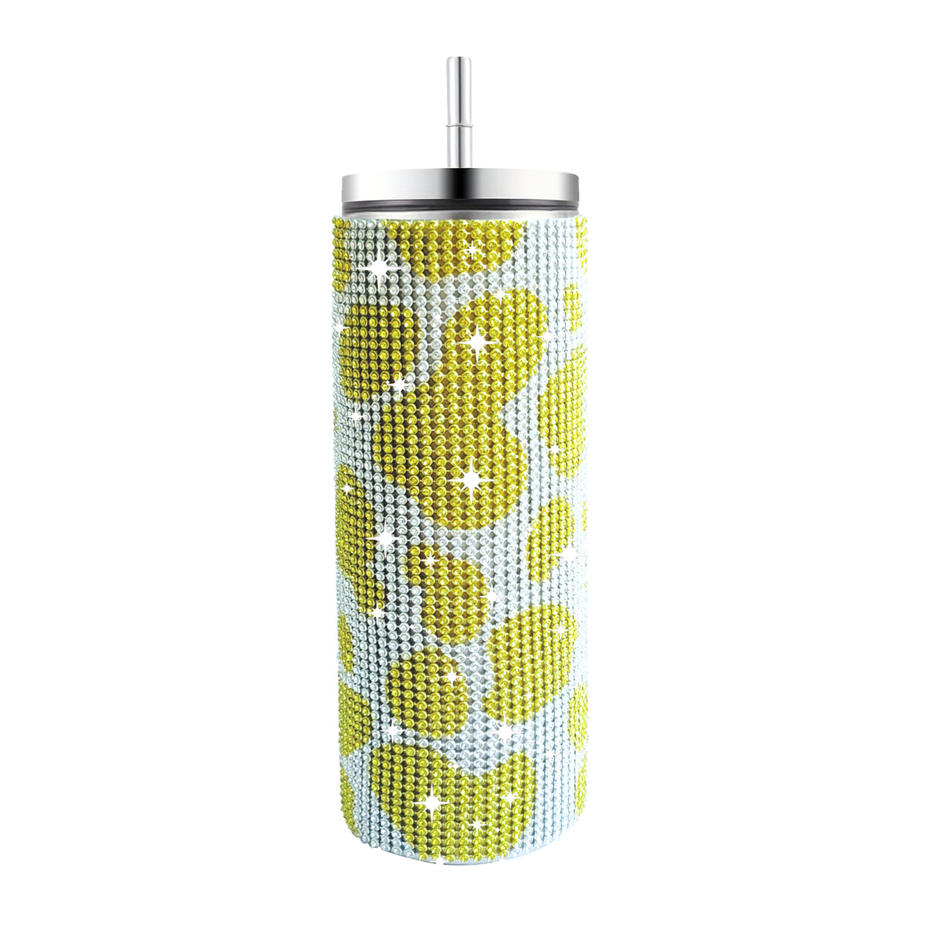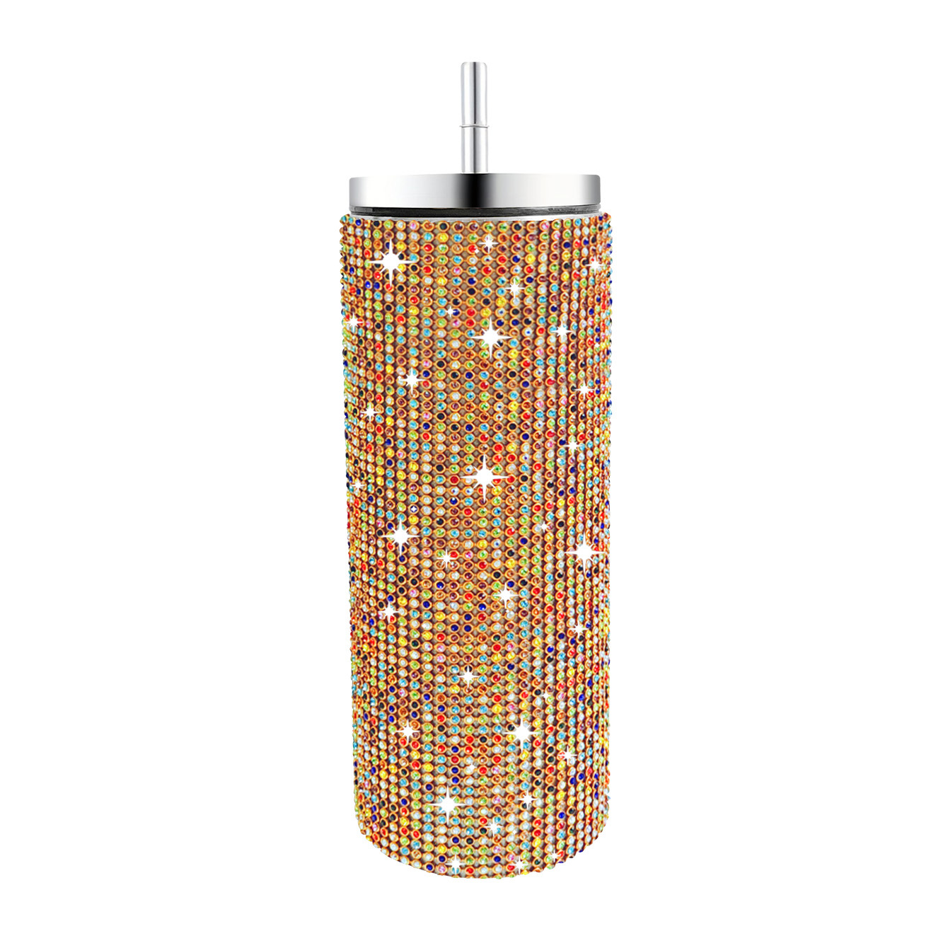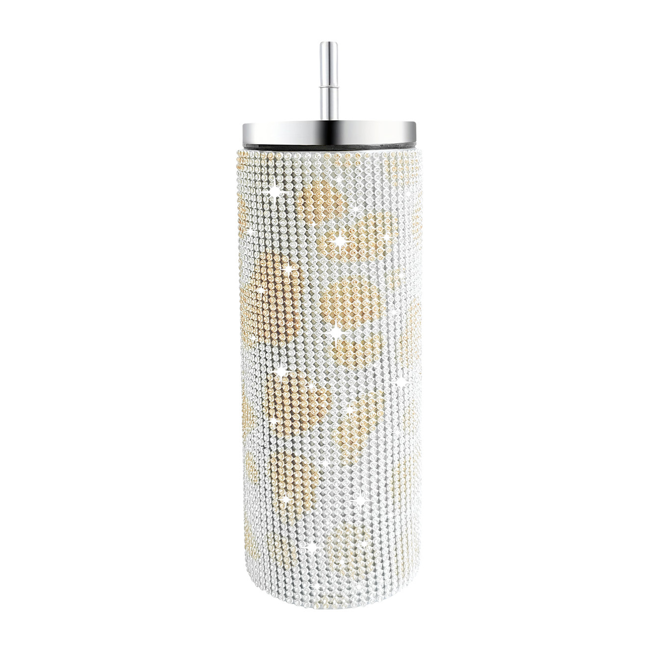 크로스 보더 아마존 20 온스 다이아몬드 박힌 스트레이트 바디 보온병 스테인레스 스틸 진공 흡입 튜브 컵 휴대용 자동차 자동차 컵