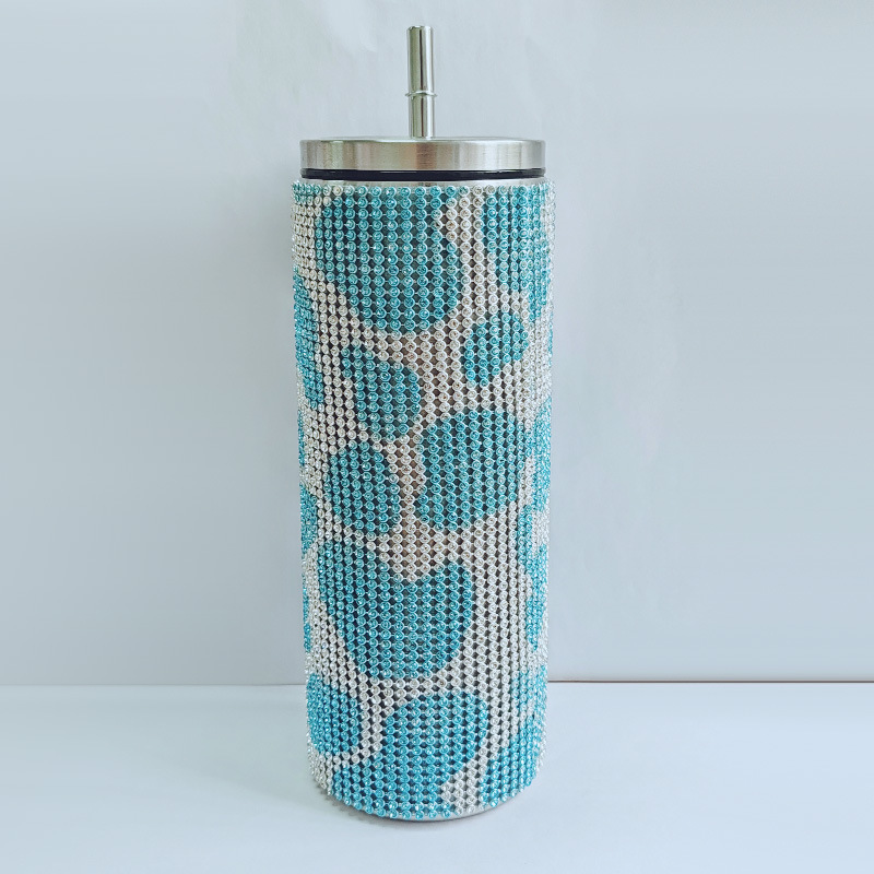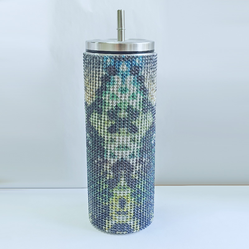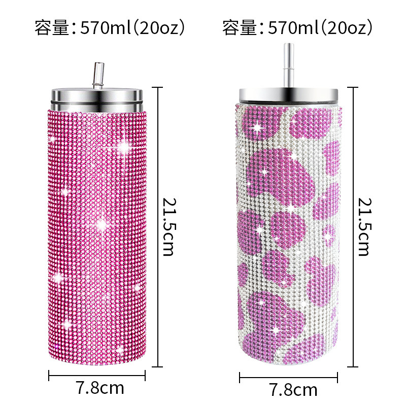 크로스 보더 아마존 20 온스 다이아몬드 박힌 스트레이트 바디 보온병 스테인레스 스틸 진공 흡입 튜브 컵 휴대용 자동차 자동차 컵스토어 가기