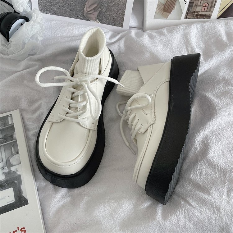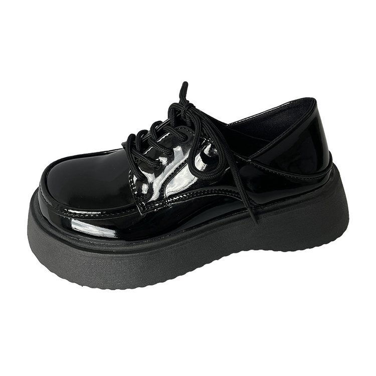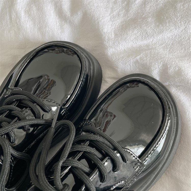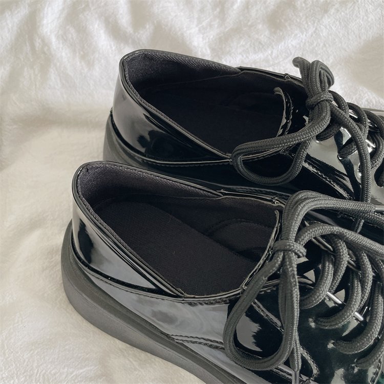 빈티지 영국 스타일 작은 가죽 신발 여성의 2024 가을 새 학생 큰 머리 Jk 싱글 레이어 신발 레이스 업 두꺼운 단독 로퍼 증가스토어 가기