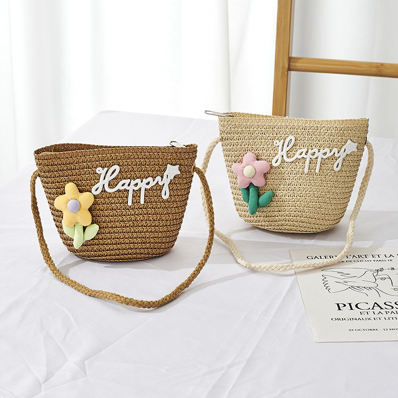 미니 밀짚 가방 어린이 가방 귀여운 여아 크로스 바디 백 패션 해피 작은 꽃 가방 아기 유행 가방스토어 가기