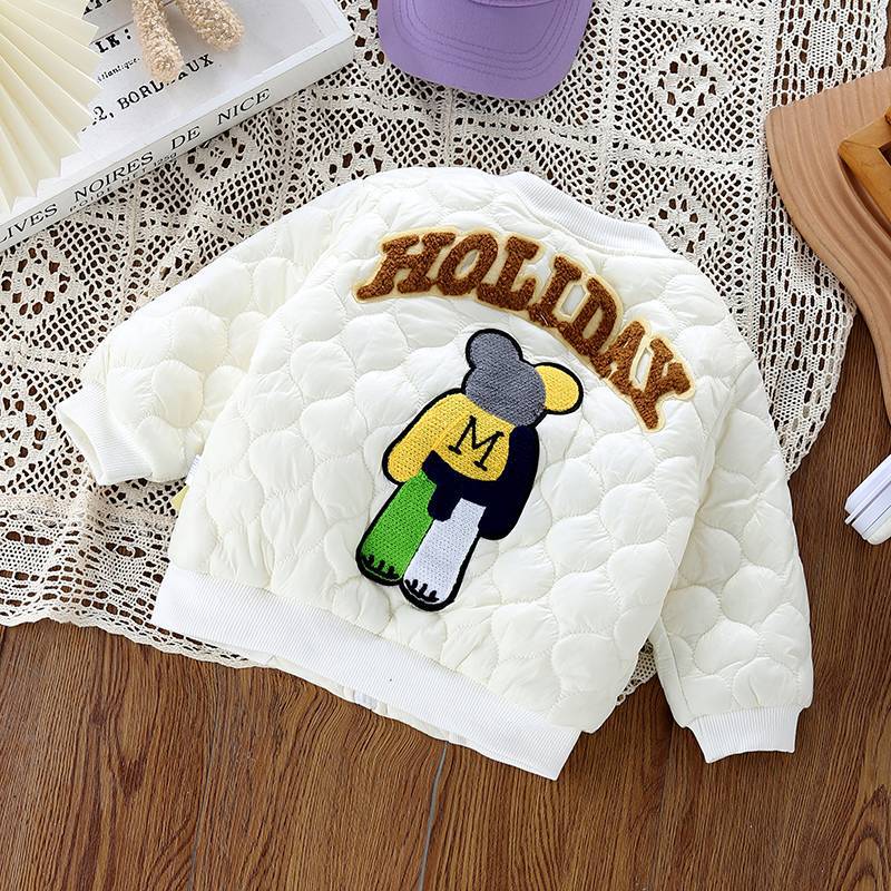 어린이 소년 소녀 기모 두꺼운 한국식 가을과 겨울 따뜻한 캐주얼 겨울 폭력적인 곰 퀼트 면화 재킷