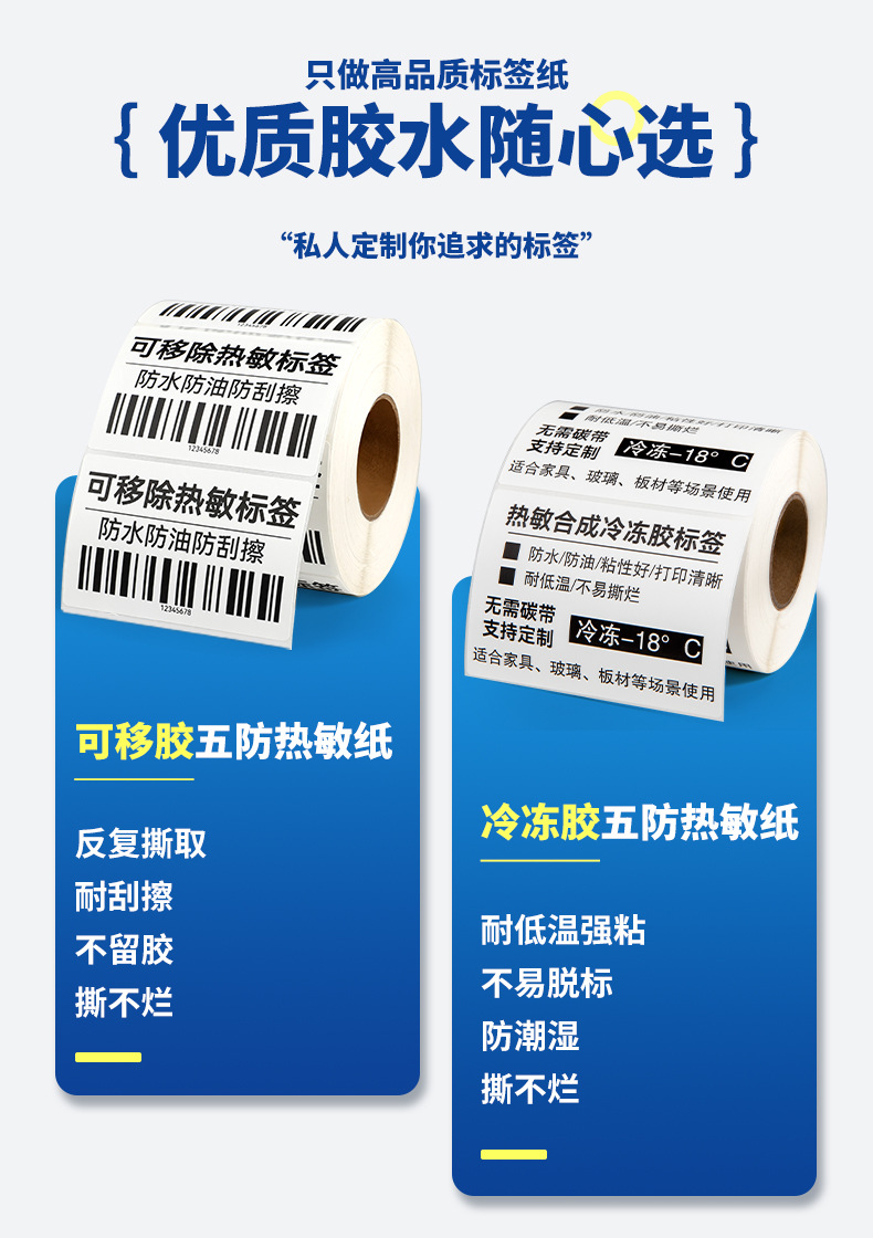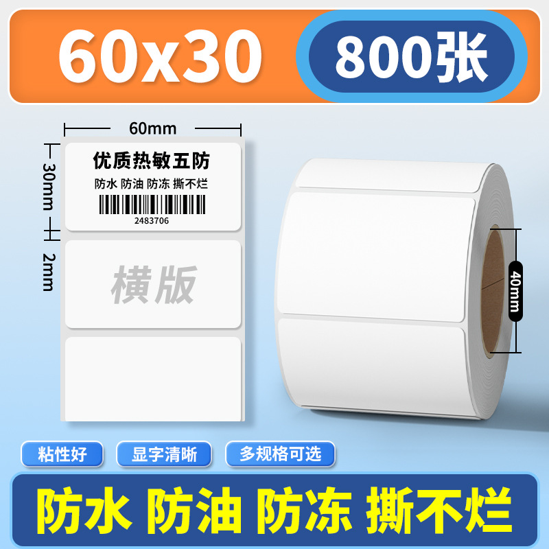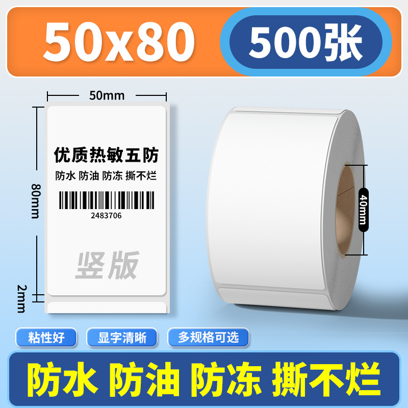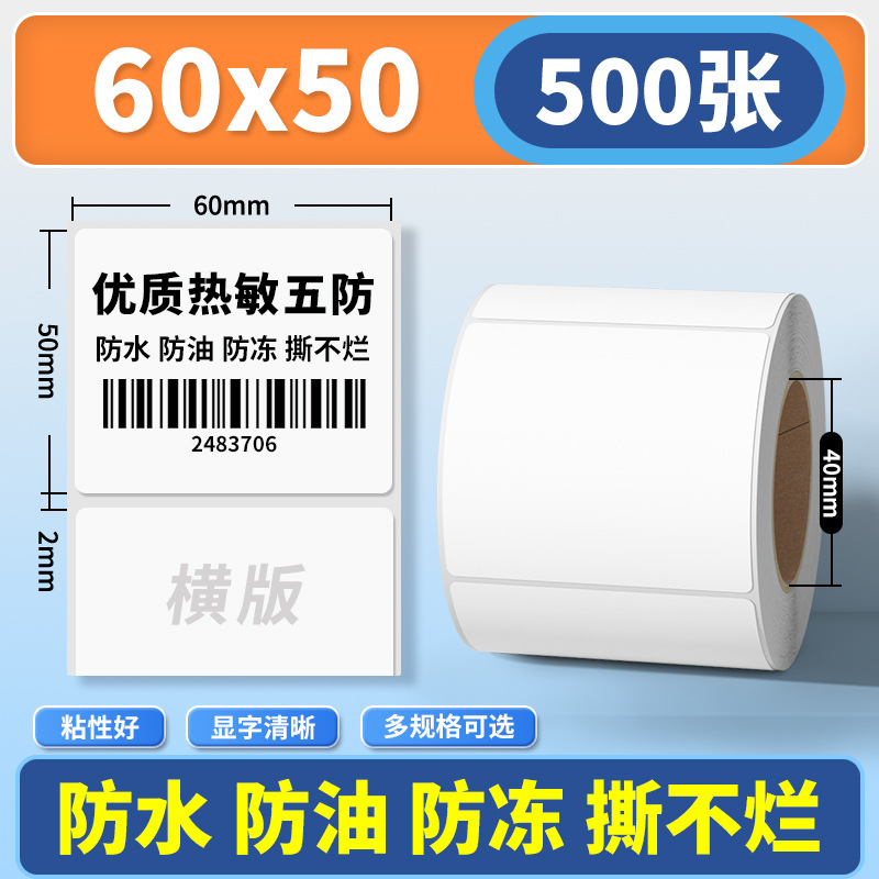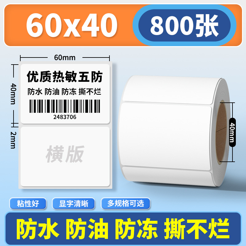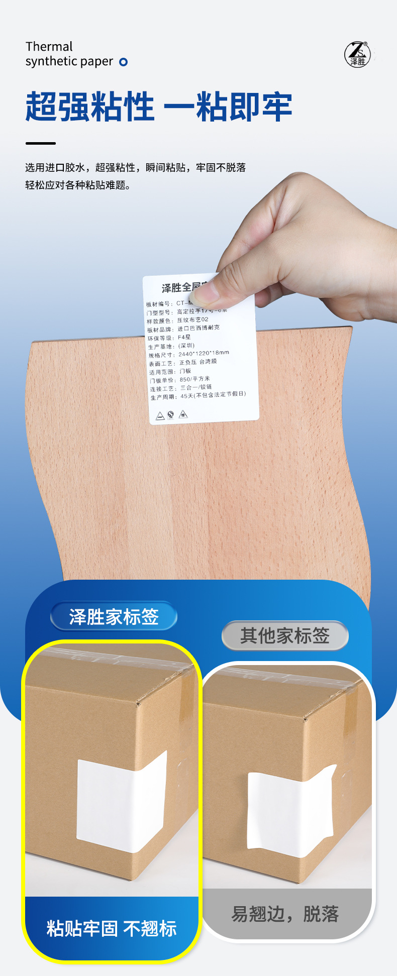5 가지 방지 감열지 의류 시트 접착 라벨 접착제를 남기지 않고 찢어지기 쉬운 탈착식 눈물 열에 민감한 합성 종이스토어 가기