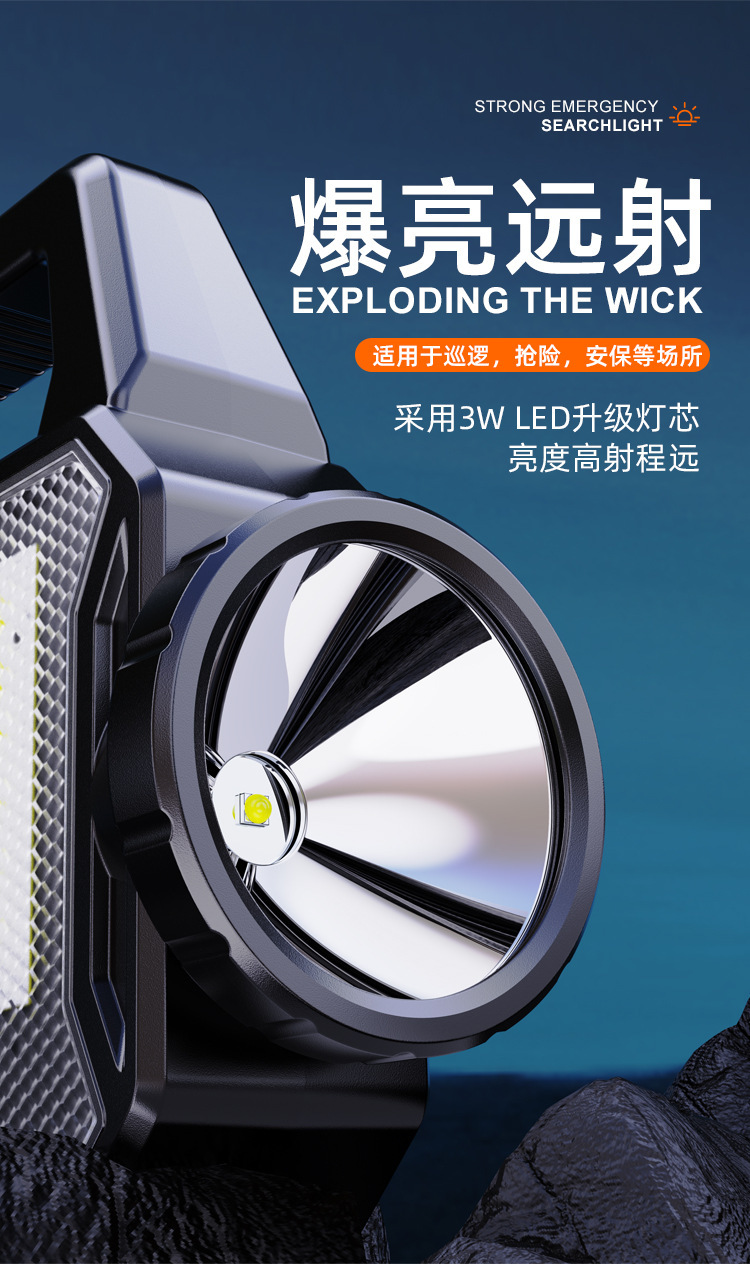 매복 국경 태양 손전등 강력한 조명 야외 USB 충전 하이라이트 다기능 작업 조명 휴대용스토어 가기