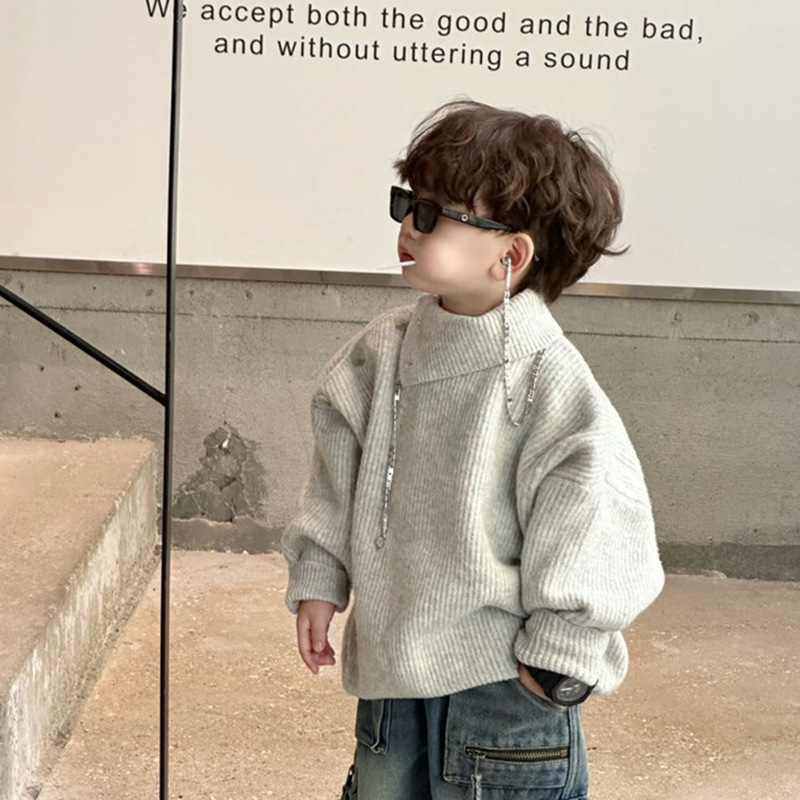 남아용 스웨터 2026년 봄/가을 신상 슈퍼 쿨한 원형 버클 디자인, 남자아이를 위한 투웨어 디자인, 패셔너블하고 트렌디한 상의스토어 가기
