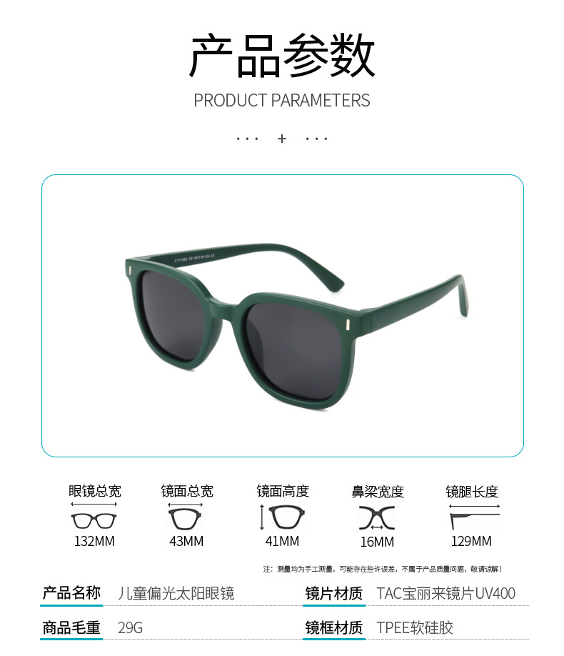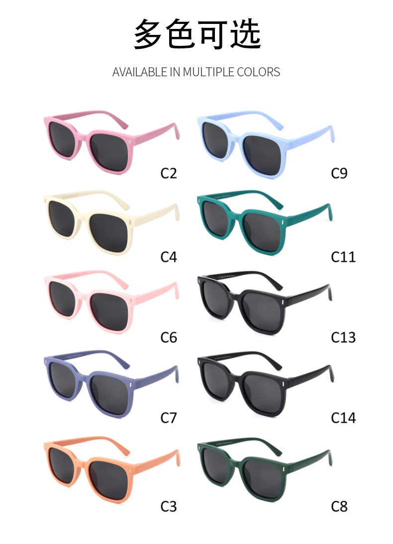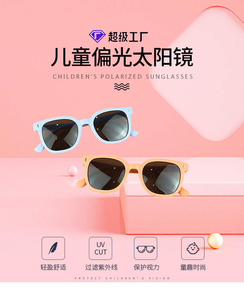 2024新款儿童偏光硅胶太阳镜宝宝男女儿童方框防紫外线墨镜11102