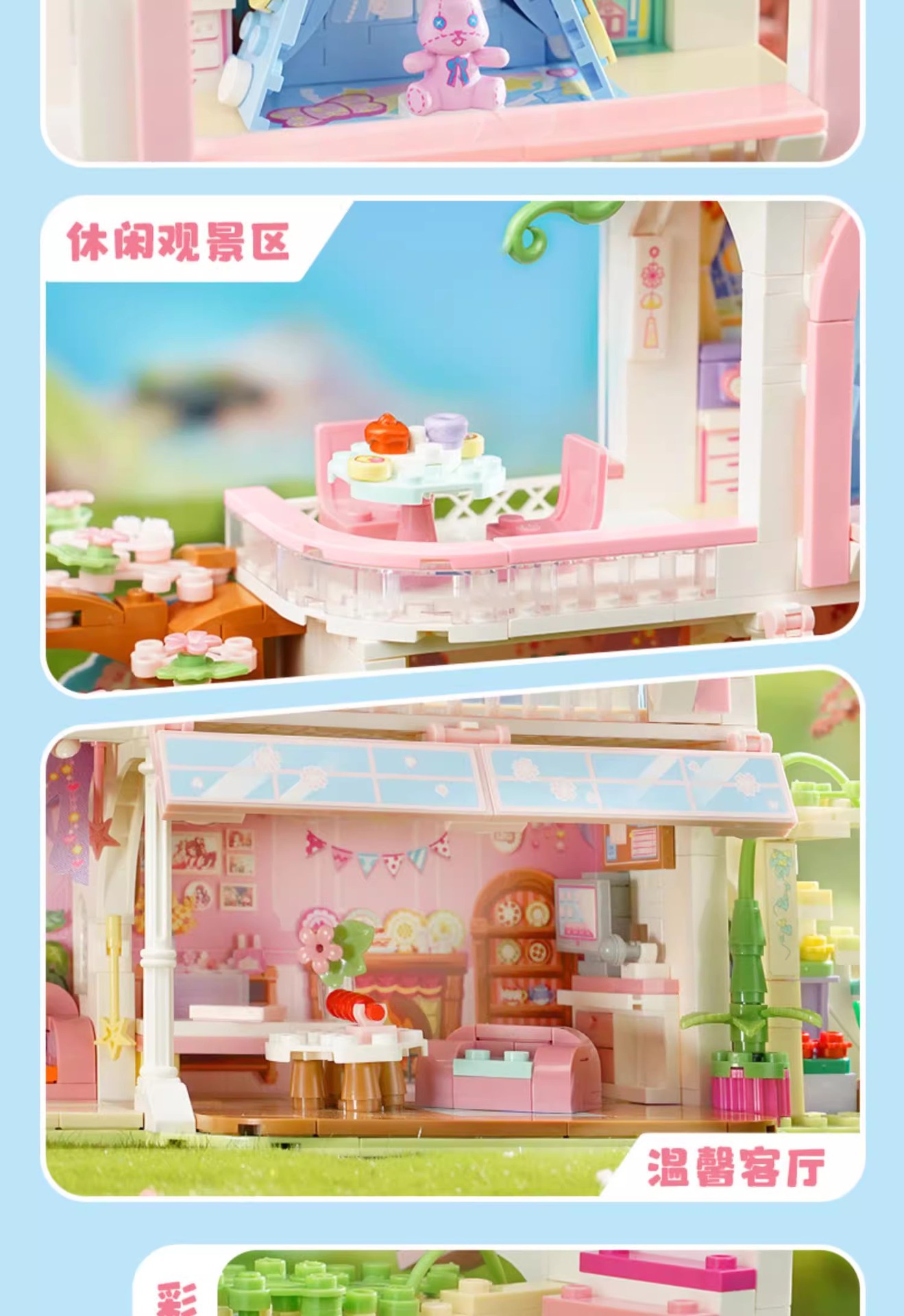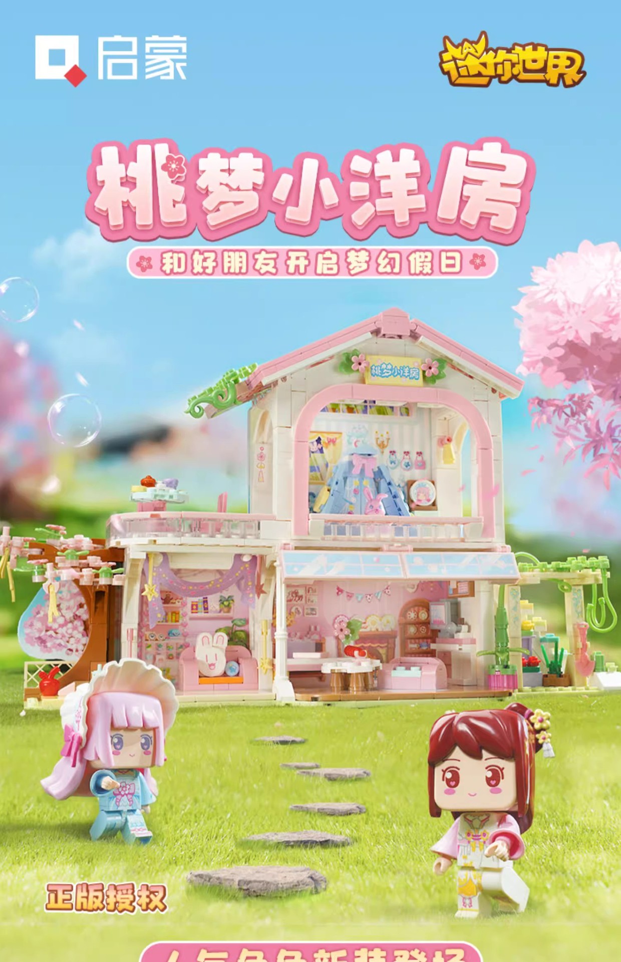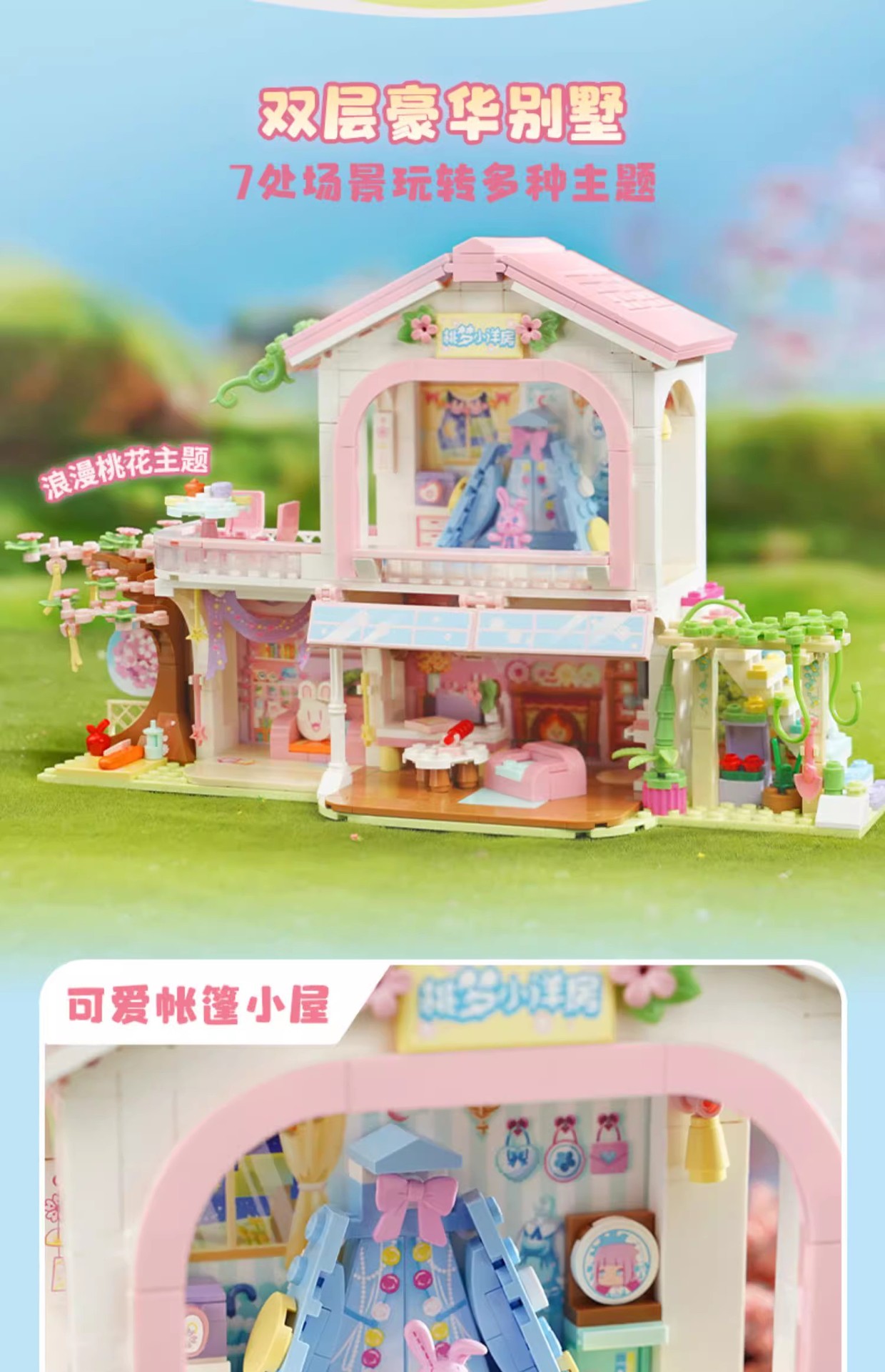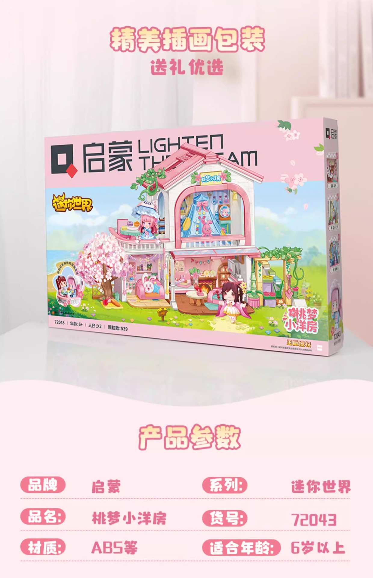 계몽 빌딩 블록 72043 내 미니 세계 복숭아 꿈 작은 집 오두막 소녀 성 장난감 큰 상자 선물스토어 가기