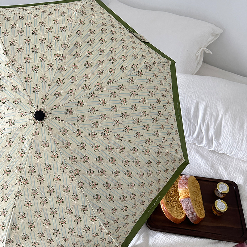 Msho 여름 신선한 작은 꽃 우산 여자의 맑고 비 오는 이중 사용 작은 휴대용 자외선 차단제 자외선 차단 태양 우산스토어 가기