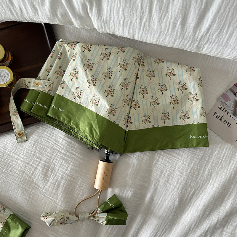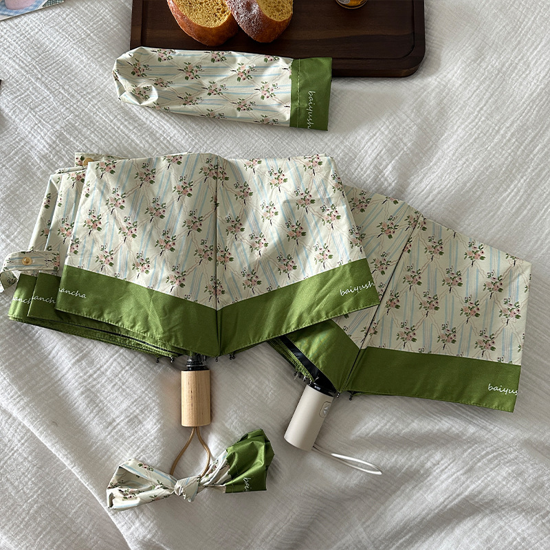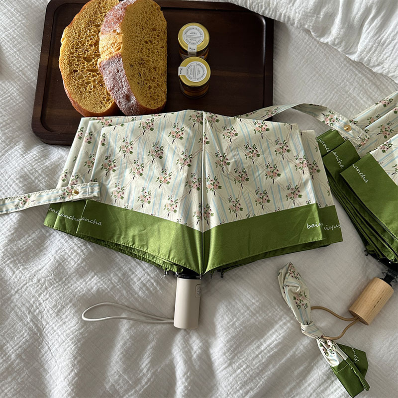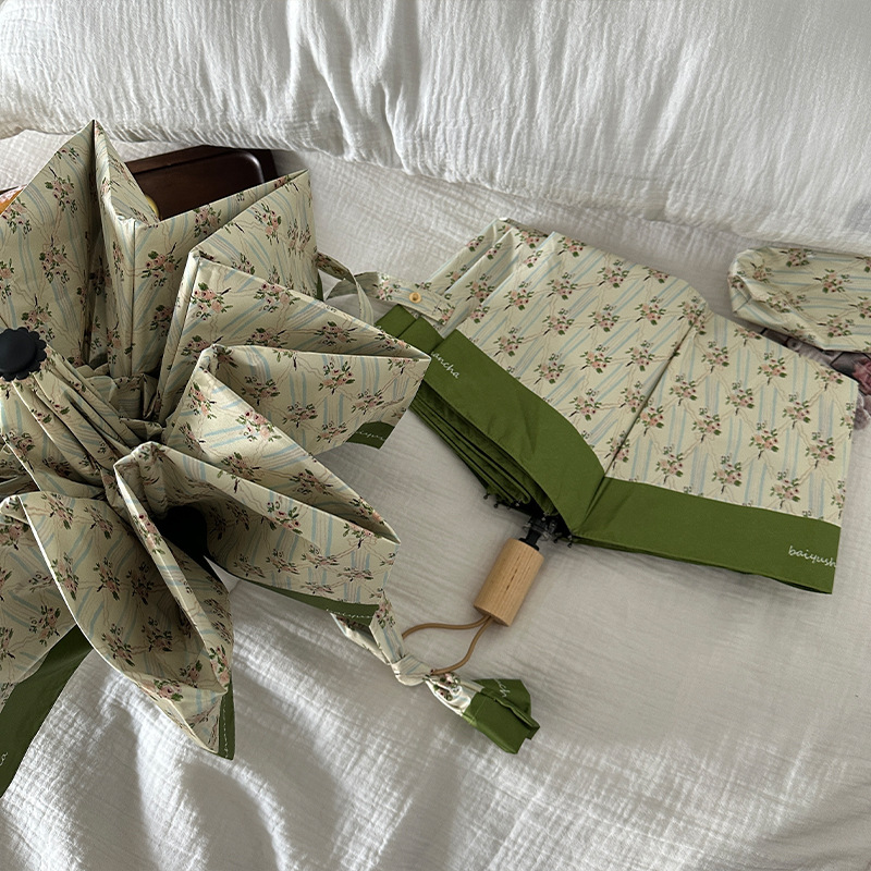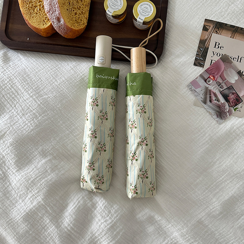 Msho 여름 신선한 작은 꽃 우산 여자의 맑고 비 오는 이중 사용 작은 휴대용 자외선 차단제 자외선 차단 태양 우산