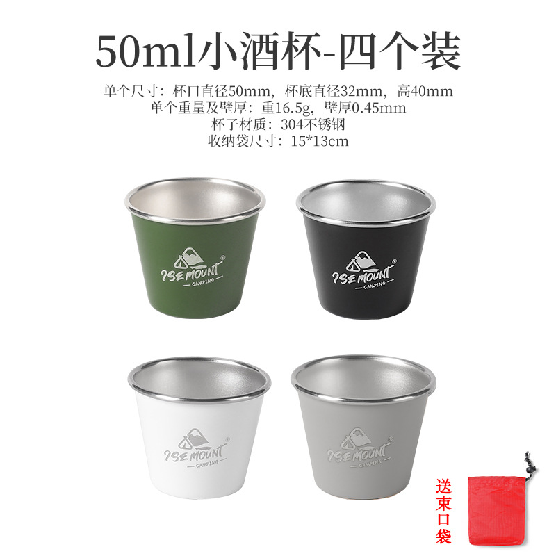 야외 50ml 맥주 잔 스몰 사이즈 304 스테인레스 스틸 휴대용 마시는 컵 차 컵 캠핑 인 스타일 커피 컵
