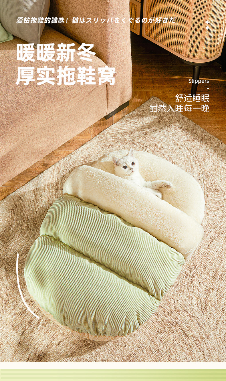 • 베이지색 슬리퍼 둥지 + 담요