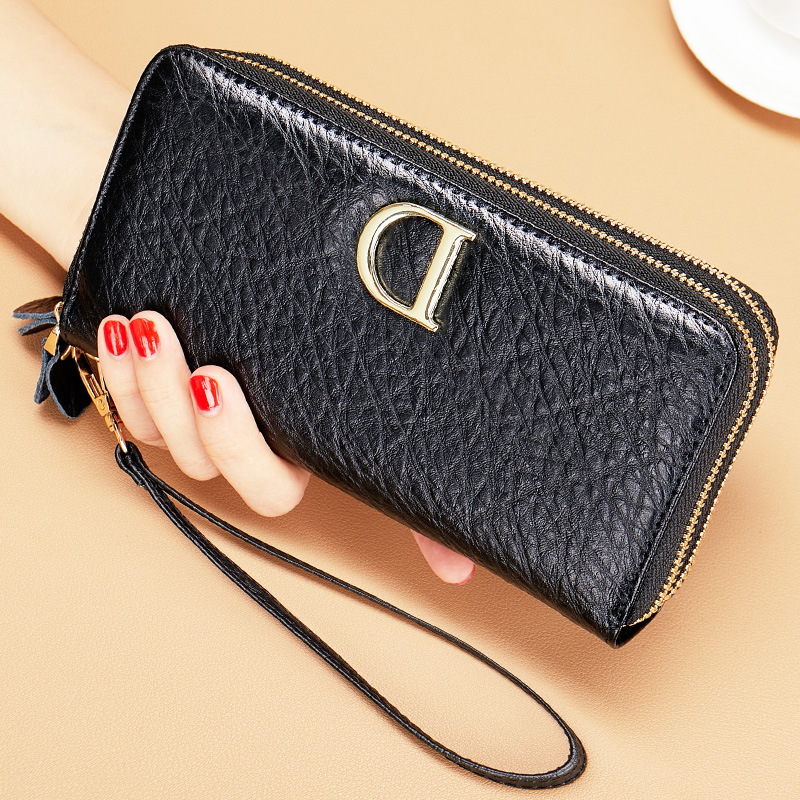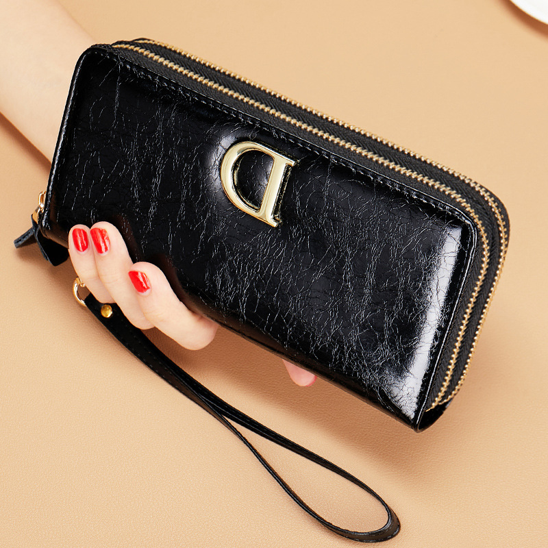 2025년 신형 부드러운 가죽 여성 지갑 여성용 긴 지갑 천연 가죽 대용량 더블 지퍼 클러치 지갑 고급형스토어 가기