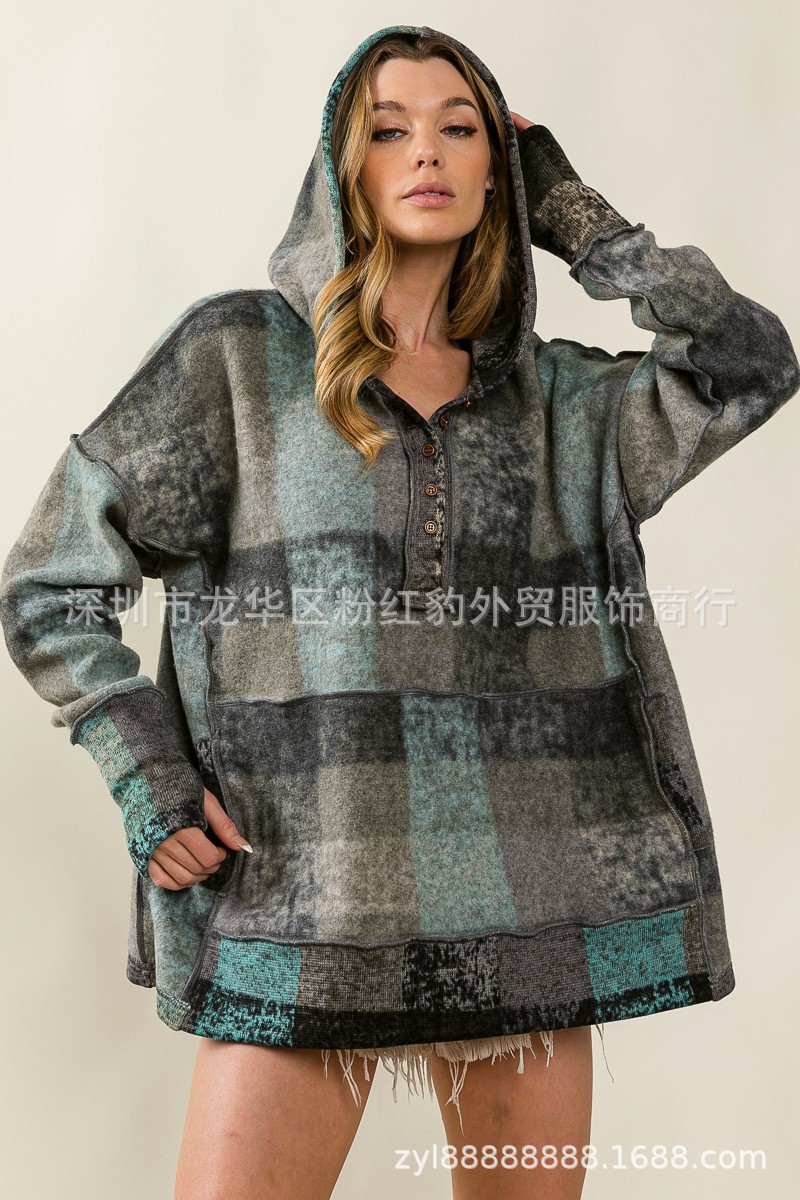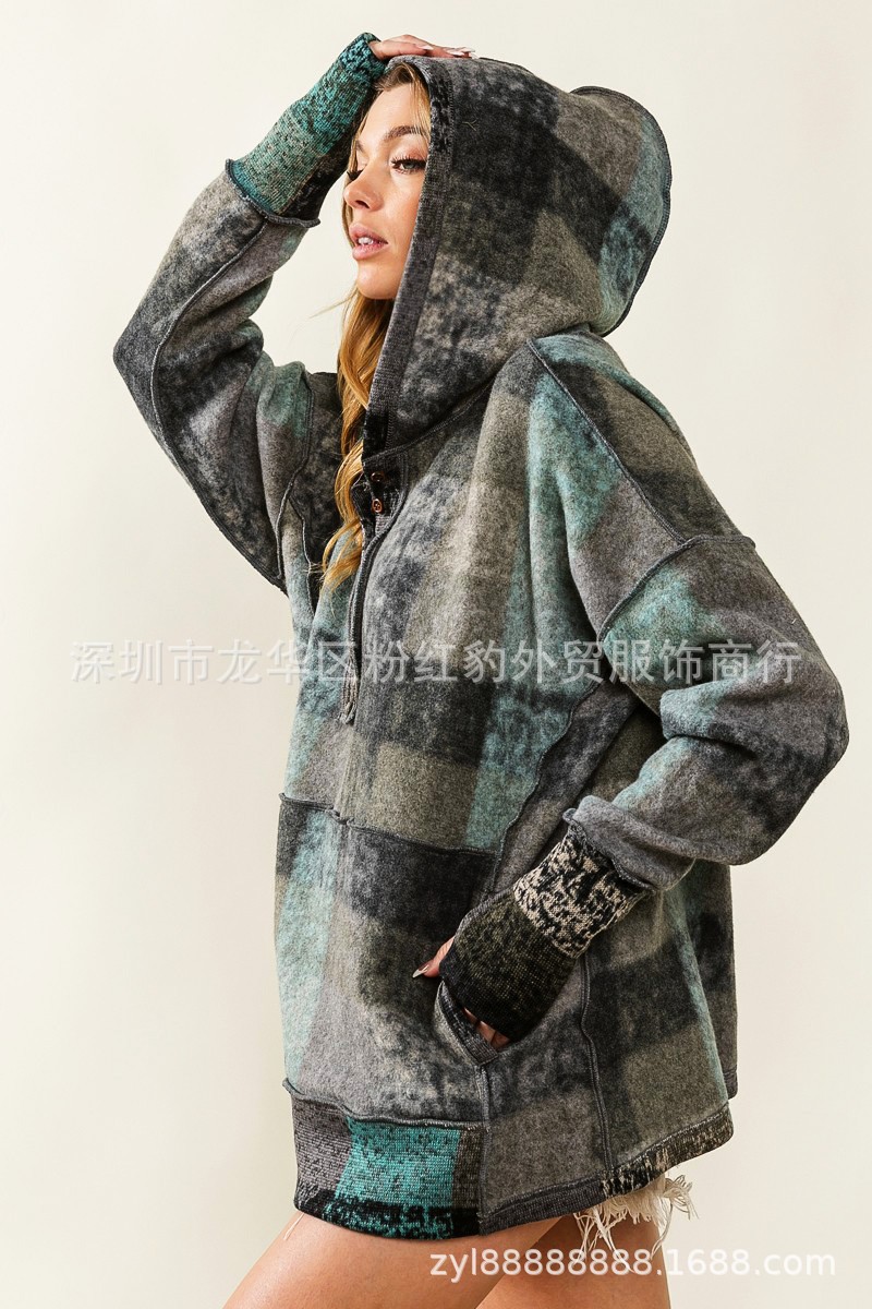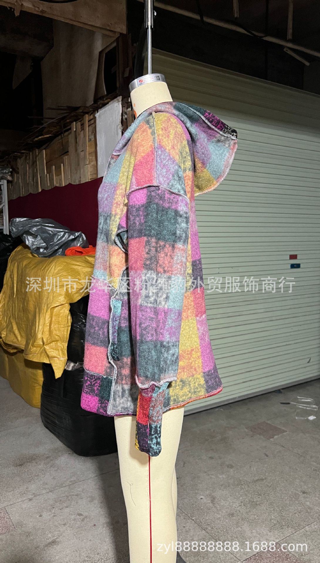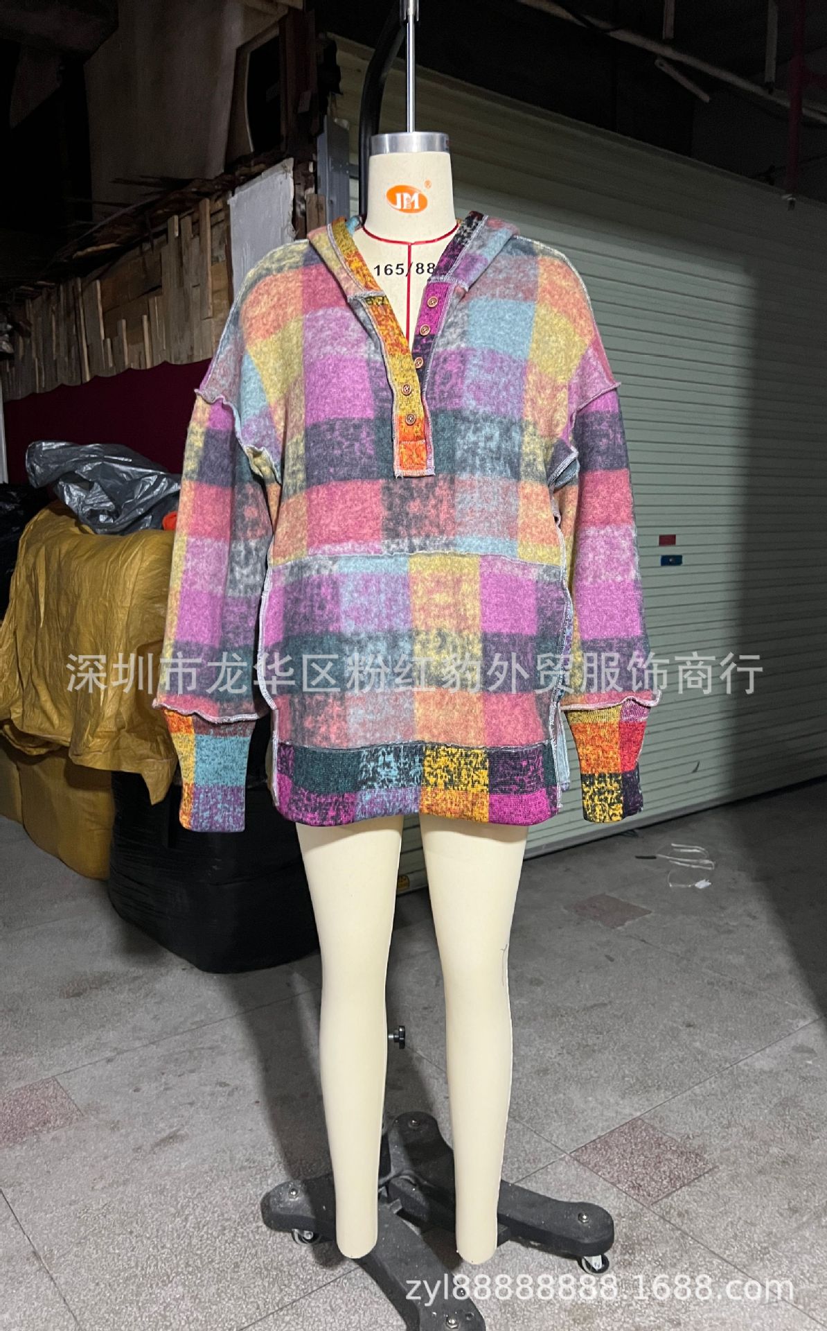 유럽과 미국의 폭발 이베이 아마존 가을/겨울 새로운 여성의 패션 다채로운 격자 후드 풀오버 양털 스웨터스토어 가기