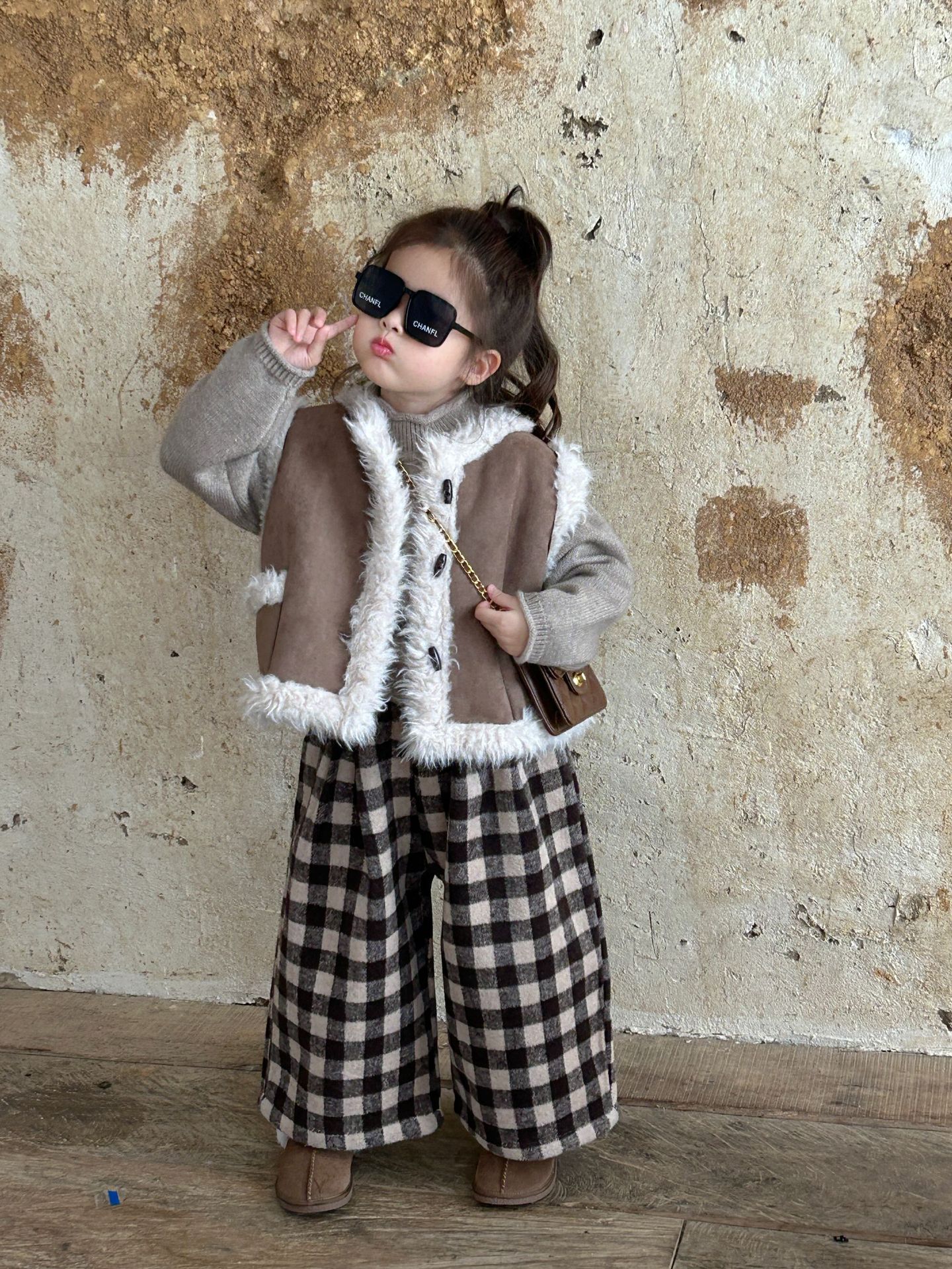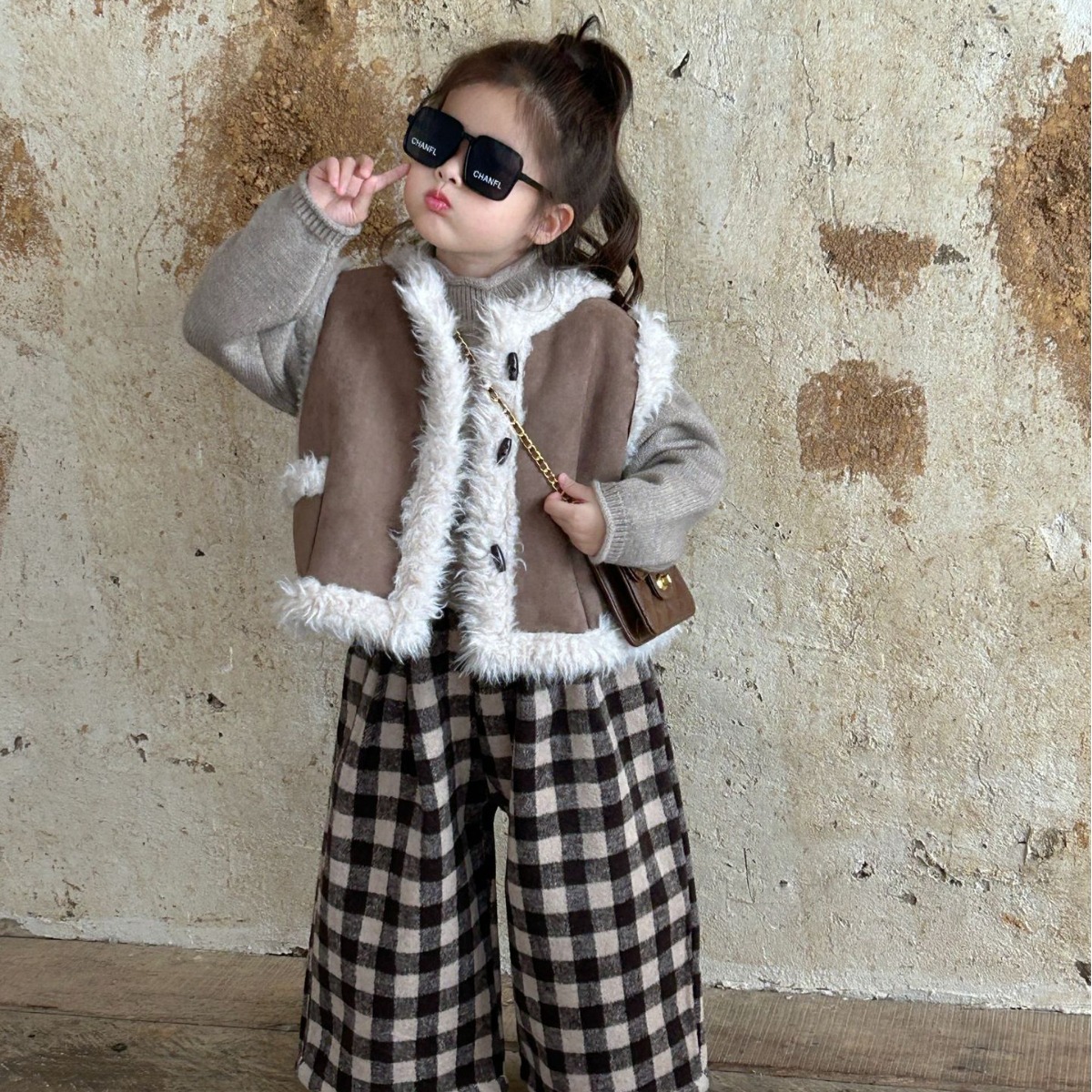 2023 겨울 새로운 한국 아동복 여아 모피 원피스 조끼 아기 기모 두꺼운 조끼 조끼스토어 가기