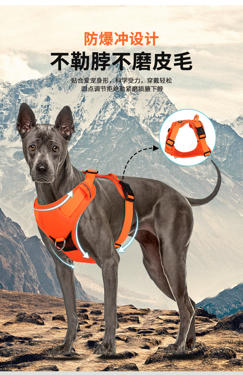 크로스 보더 개 견인 로프 조끼 애완 동물 가슴 스트랩 안티 브레이크 큰 개 가슴 스트랩 반사 개 워킹 로프스토어 가기