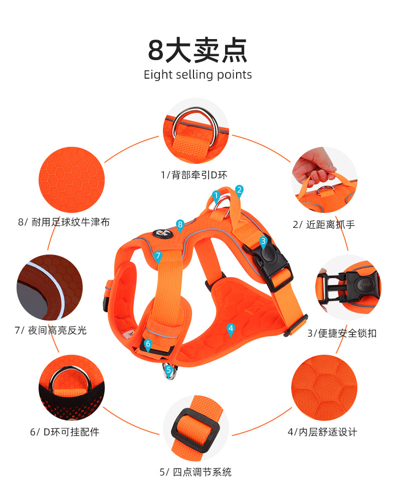 크로스 보더 개 견인 로프 조끼 애완 동물 가슴 스트랩 안티 브레이크 큰 개 가슴 스트랩 반사 개 워킹 로프