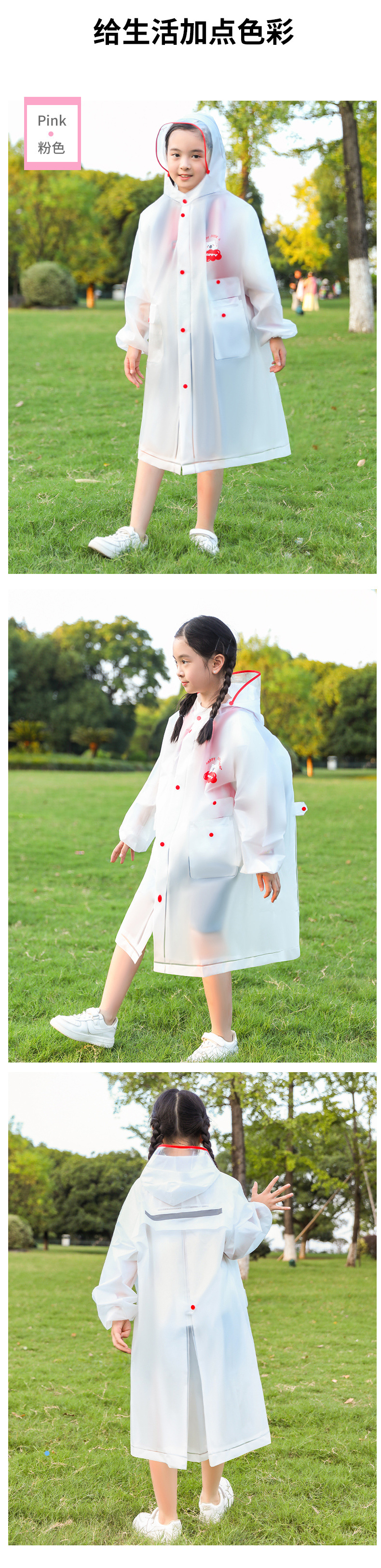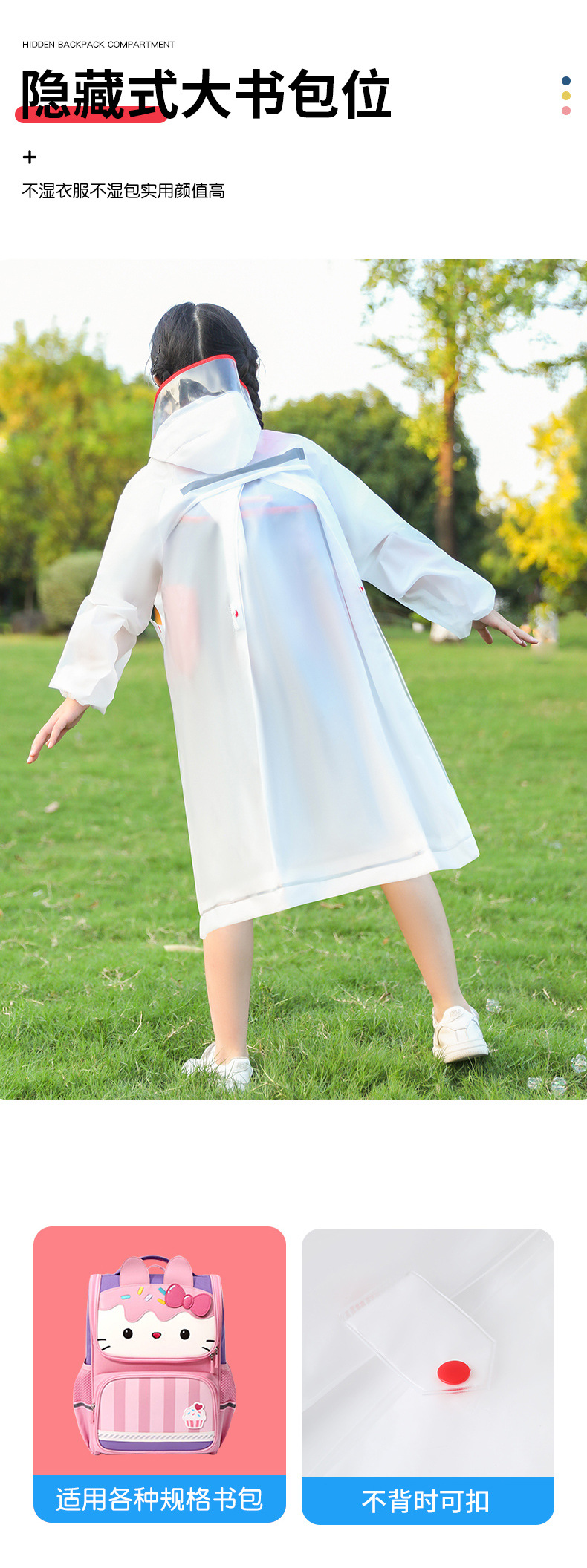 어린이용 귀여운 비옷, 야외 여행용 휴대용, 학교용, 폭우 방지 EVA 레인코트, 어린이용 야외용 일체형 비옷