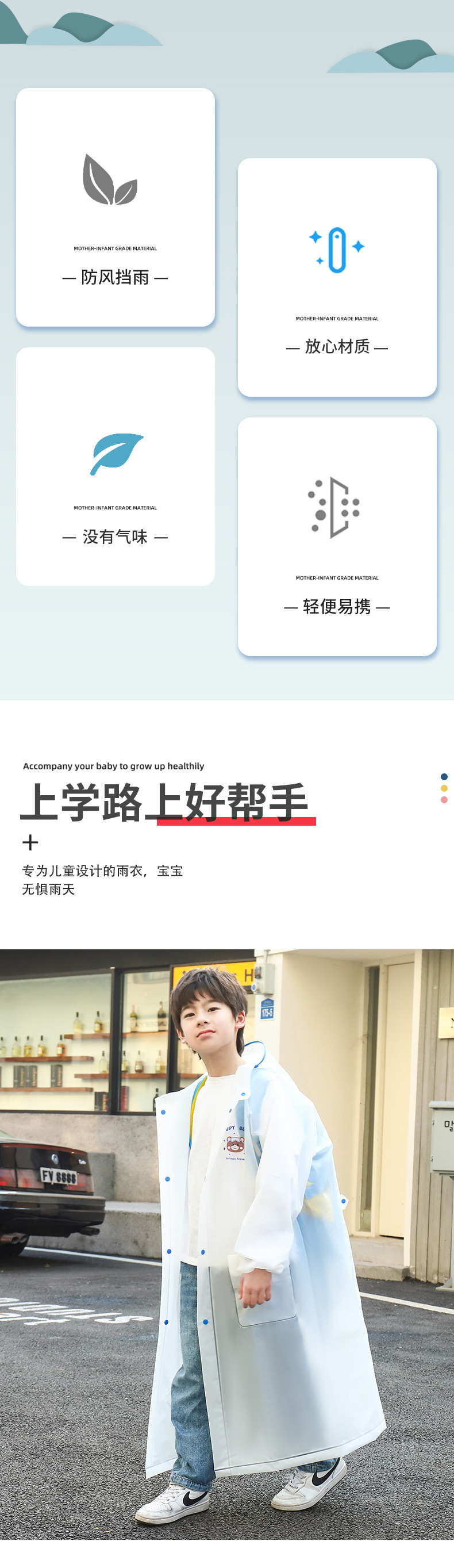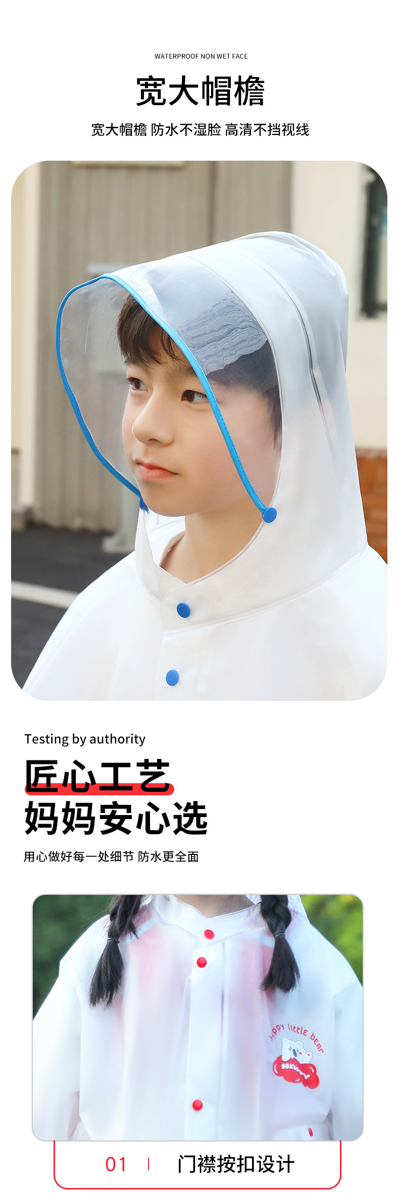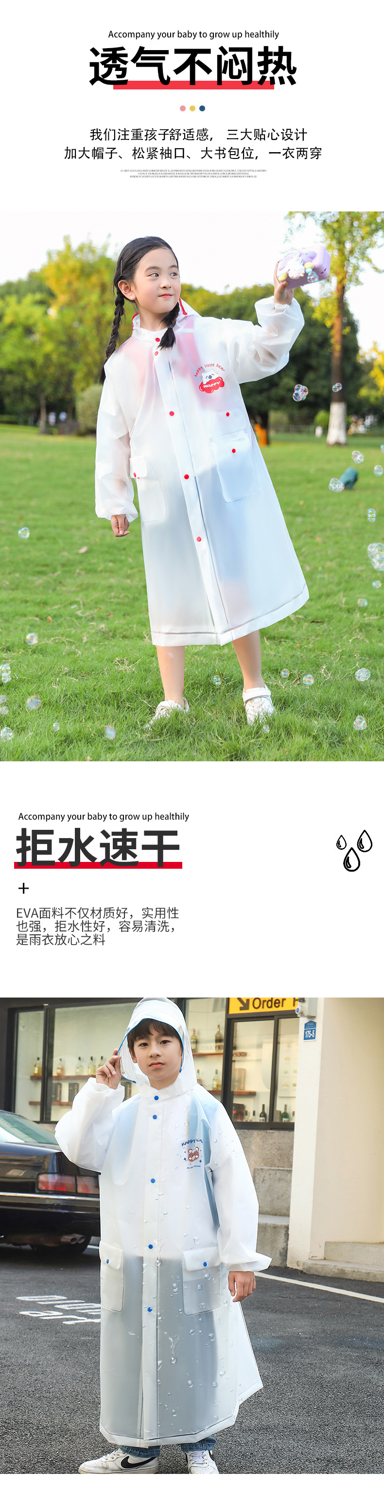 어린이용 귀여운 비옷, 야외 여행용 휴대용, 학교용, 폭우 방지 EVA 레인코트, 어린이용 야외용 일체형 비옷스토어 가기