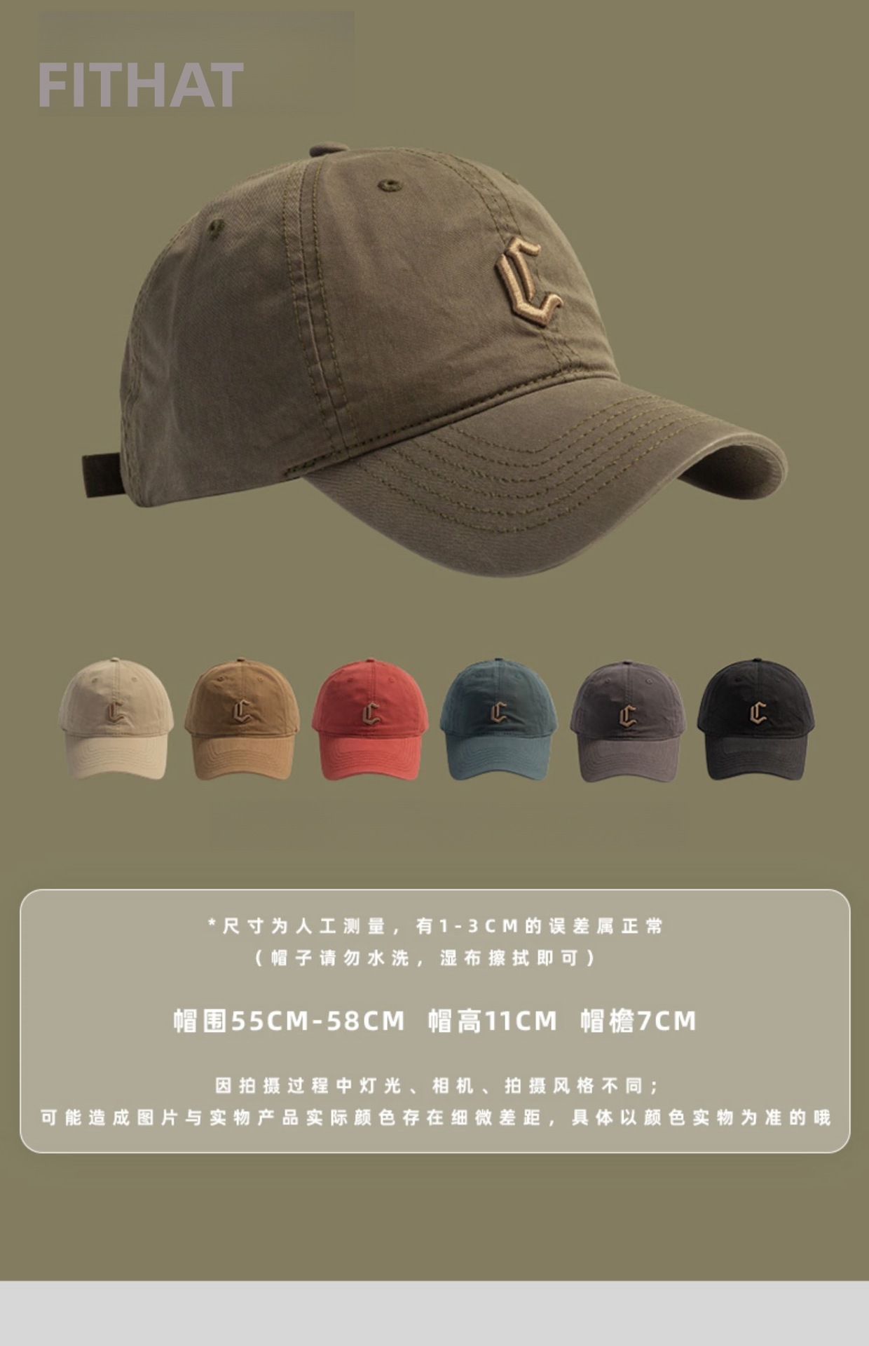 사계절 활용 가능한 남녀공용 워싱 야구모자 입체 자수 썬캡 큰 머리둘레 곡선챙 모자 트렌디스토어 가기