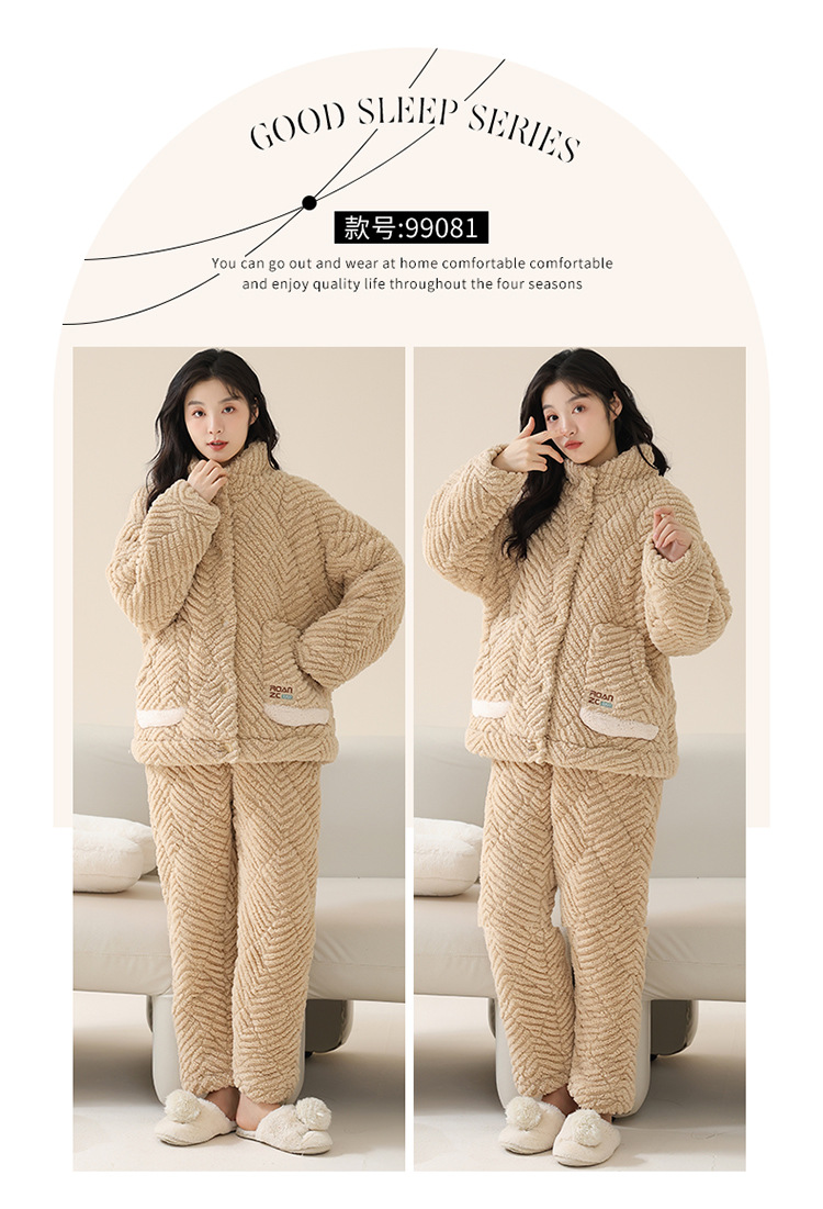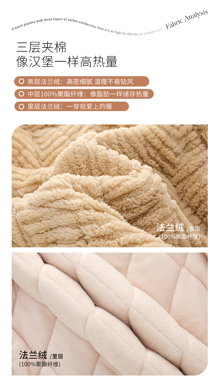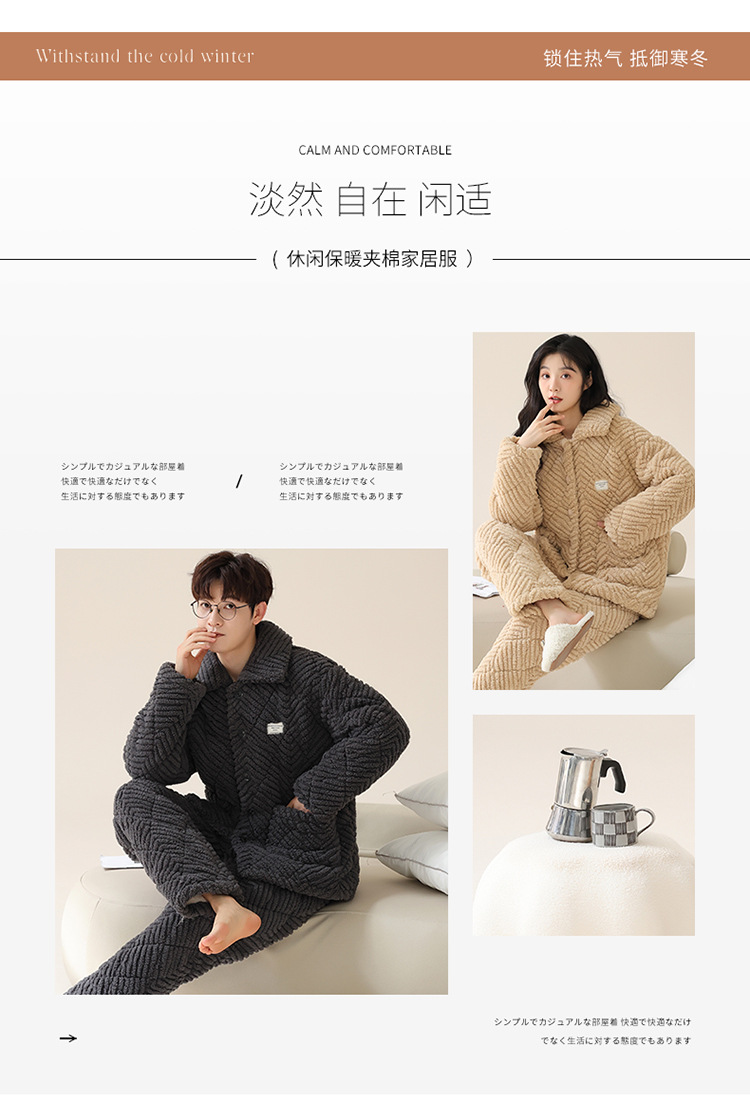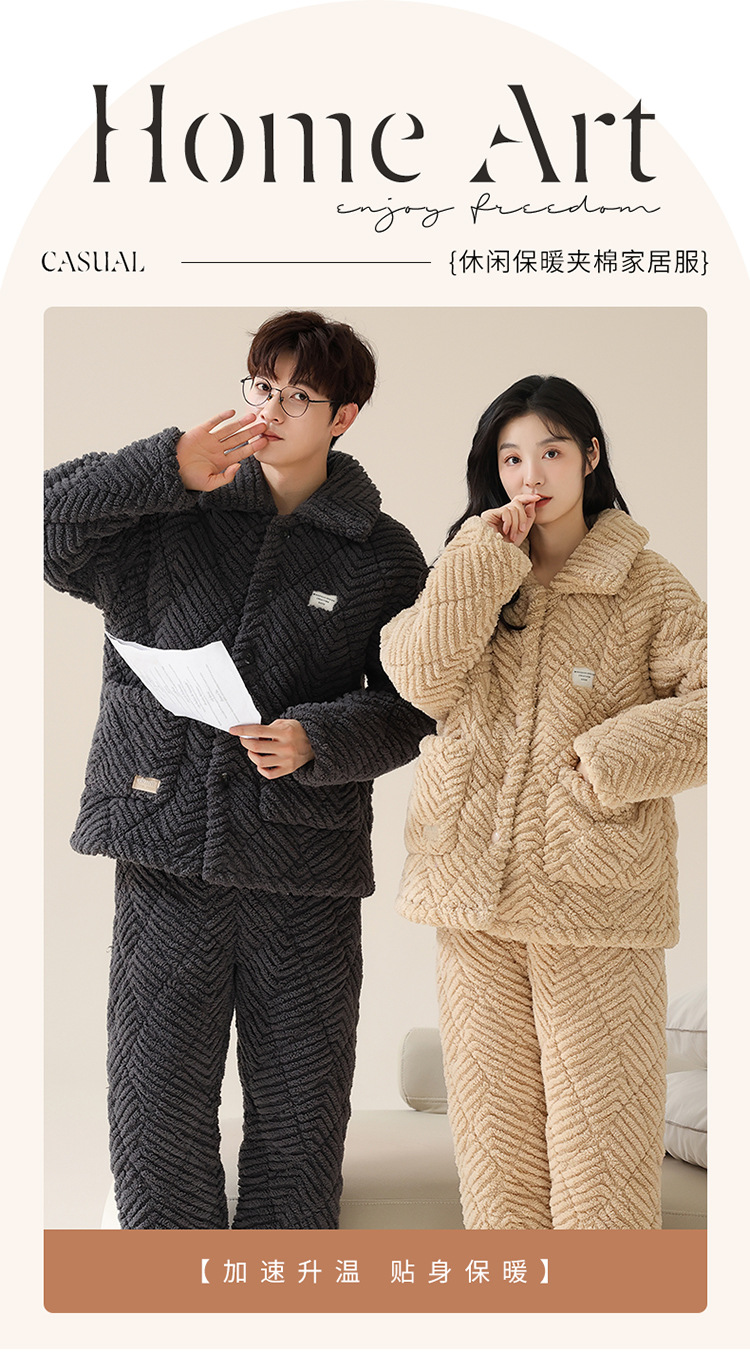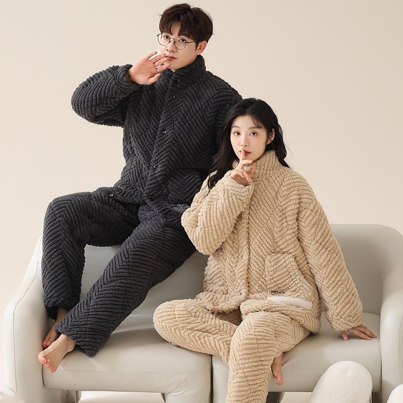 커플 잠옷 겨울 3 층 두꺼운 누비 이불 산호 양털 따뜻한 플란넬 카디건 남성과 여성의 가정 의류 세트스토어 가기