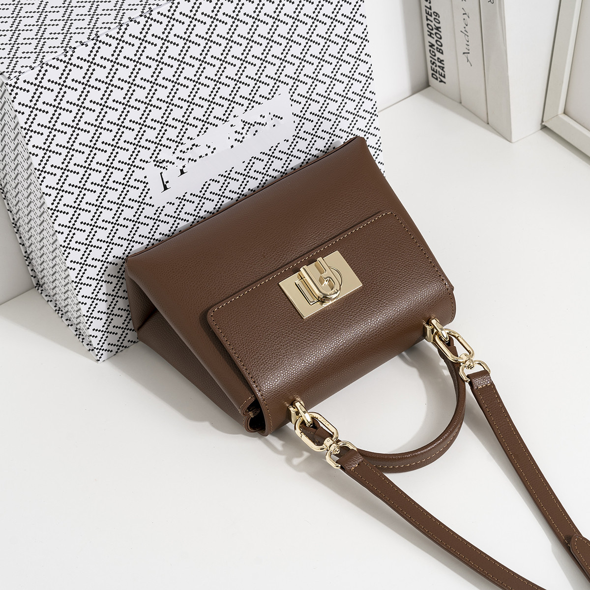 F 홈 새로운 1927 패션 Cowhide 통근자 미니 가방 여성용 어깨 휴대용 크로스 바디 올 매치 여성용 가방스토어 가기