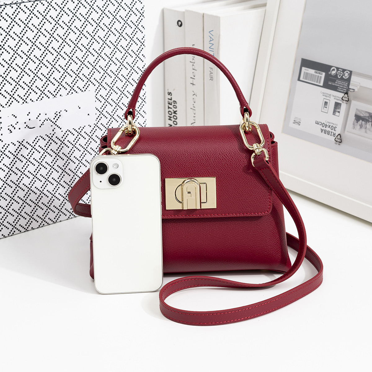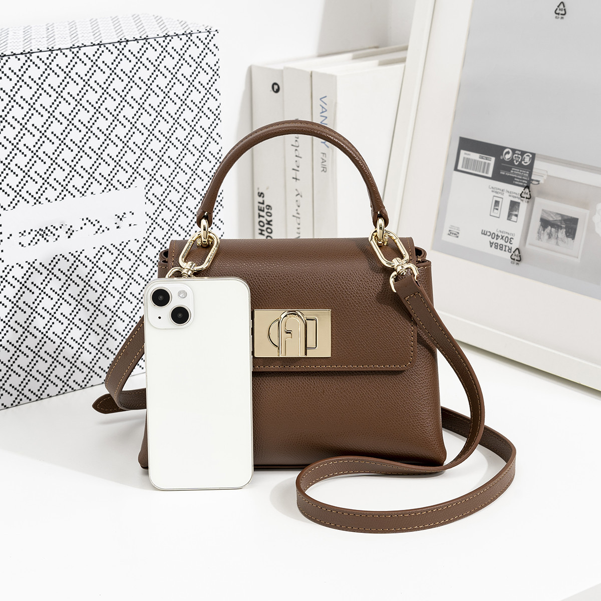 F 홈 새로운 1927 패션 Cowhide 통근자 미니 가방 여성용 어깨 휴대용 크로스 바디 올 매치 여성용 가방