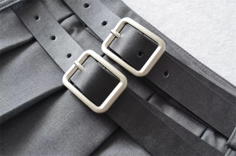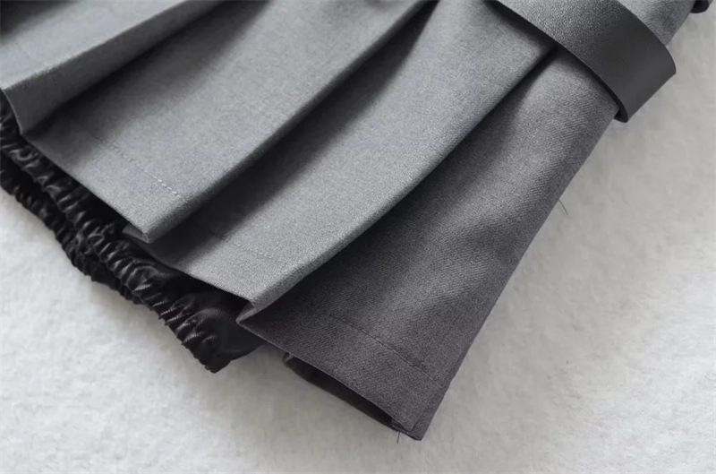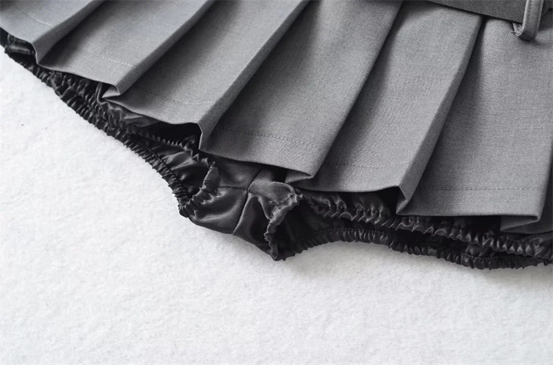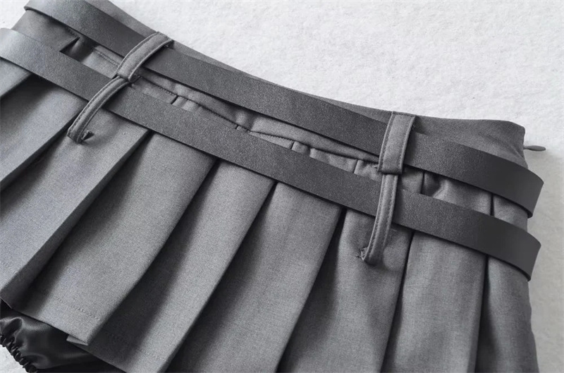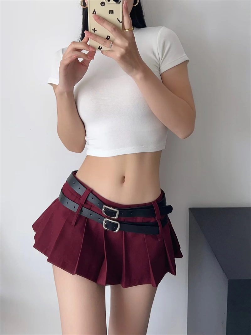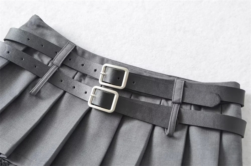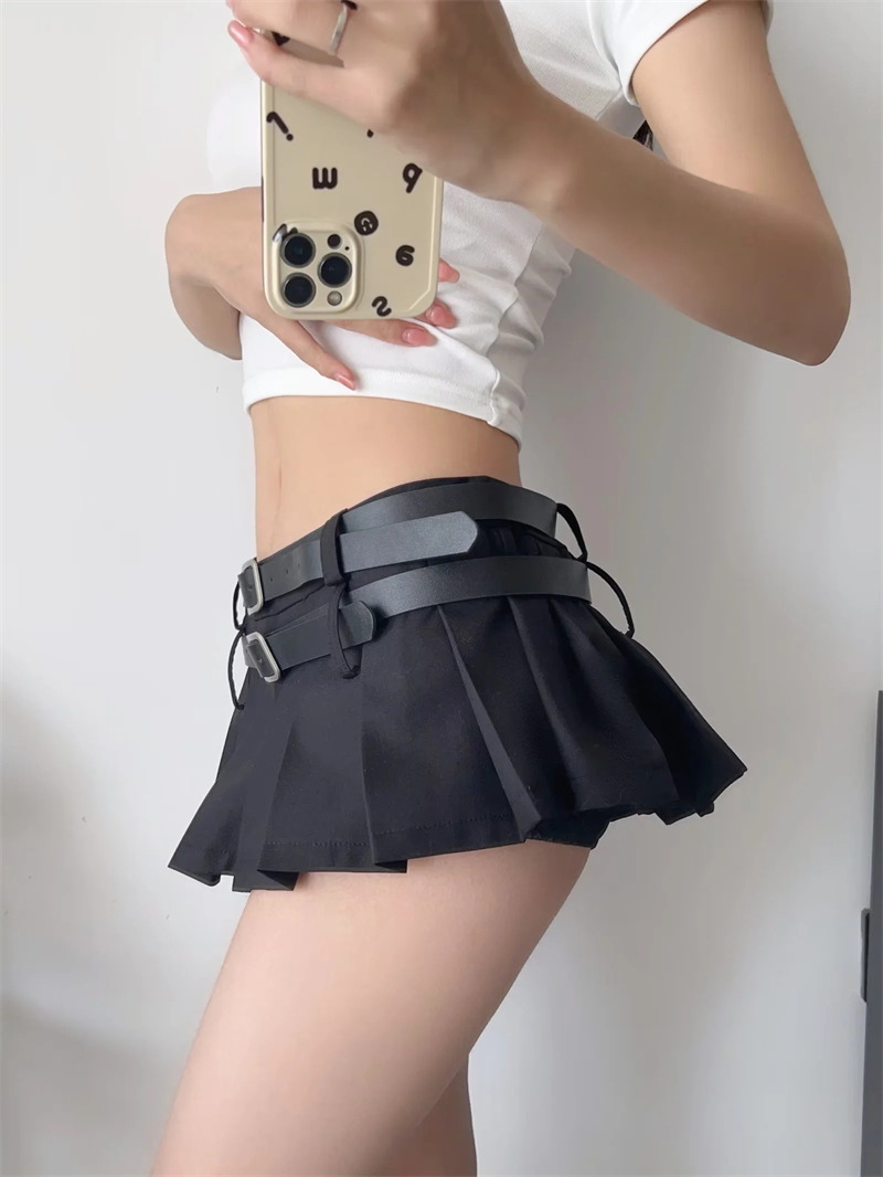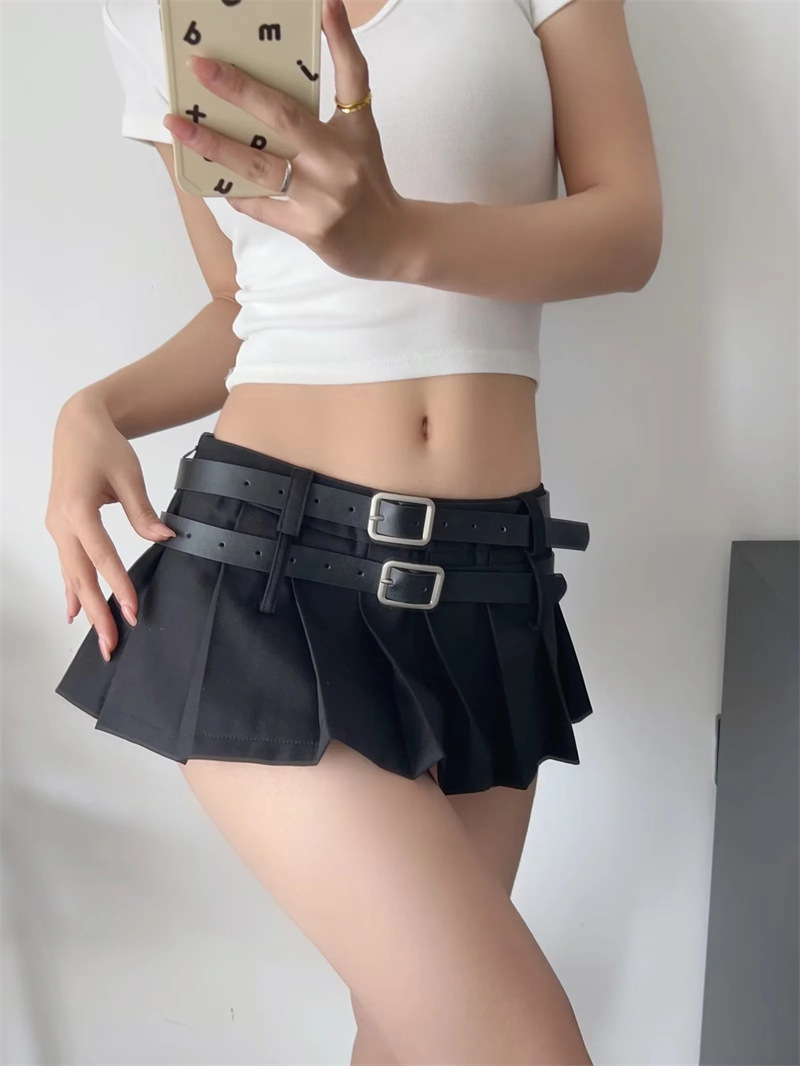 아메리칸 틈새 더블 벨트 스커트 여성용 유럽과 미국 디자인 스파이스 걸 눈부심 방지 모든 매치 플리츠 A 라인 미니 스커트