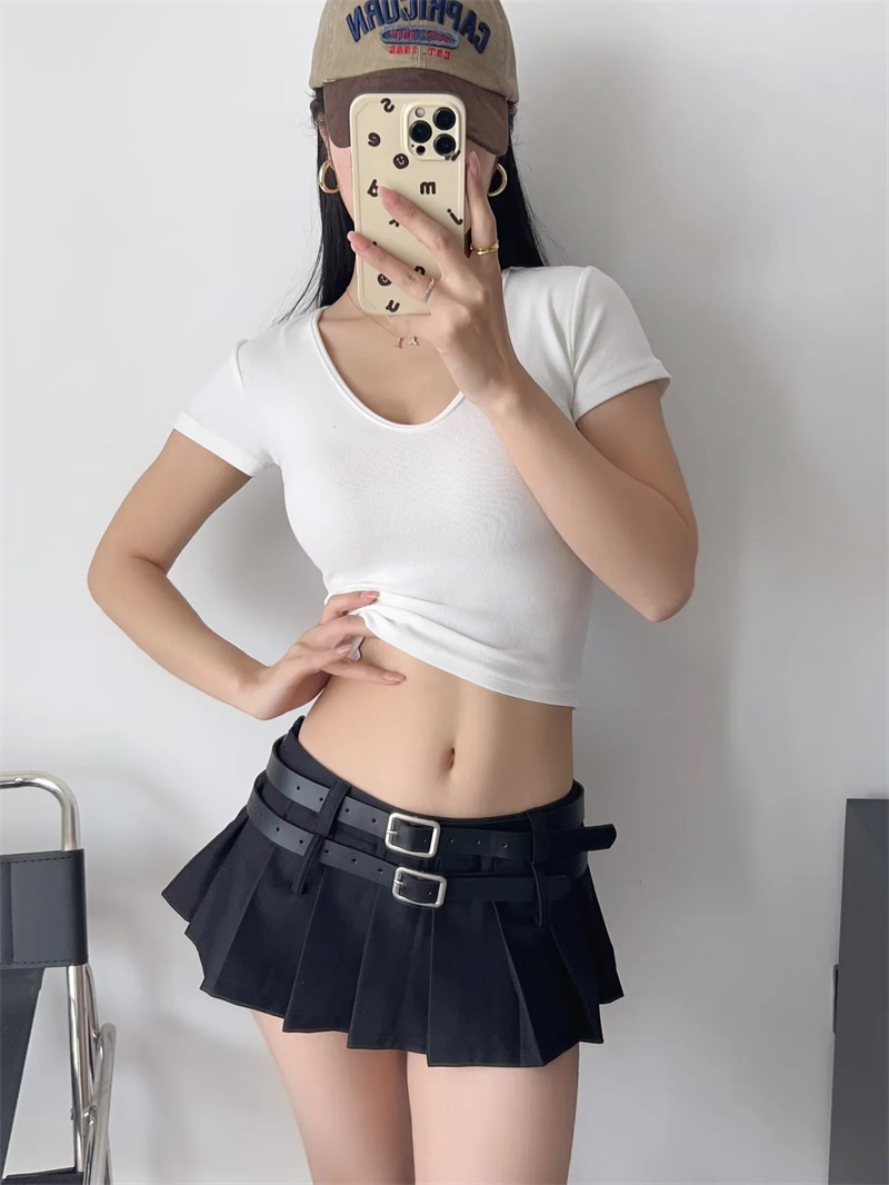 아메리칸 틈새 더블 벨트 스커트 여성용 유럽과 미국 디자인 스파이스 걸 눈부심 방지 모든 매치 플리츠 A 라인 미니 스커트스토어 가기