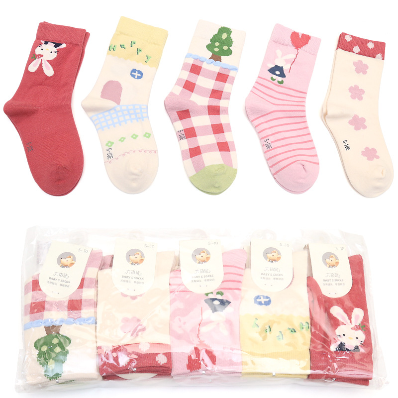 6 손가락 마우스 어린이 양말 길어진 뼈없는 만화 한국식 핑크 부드러운 긴 배럴 카드 소녀의 클래스 A 양말 75 면 학생스토어 가기
