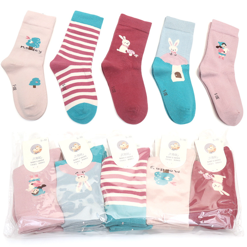 6 손가락 마우스 어린이 양말 길어진 뼈없는 만화 한국식 핑크 부드러운 긴 배럴 카드 소녀의 클래스 A 양말 75 면 학생