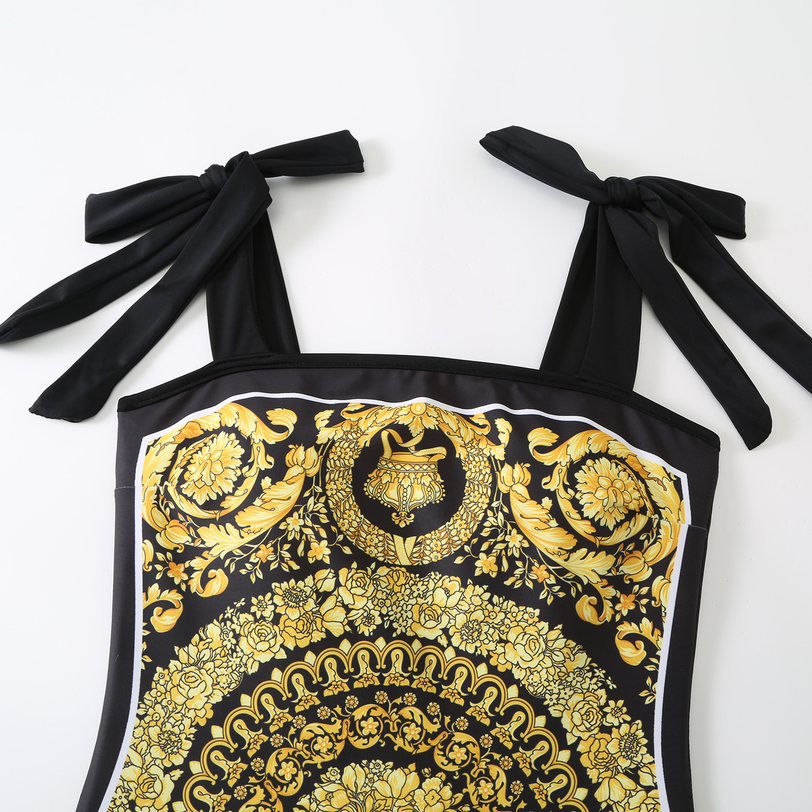 2023 구미 크로스보더 양면 프린트 원피스 수영복 비치 온천 보수 거즈 스커트 2 종 세트