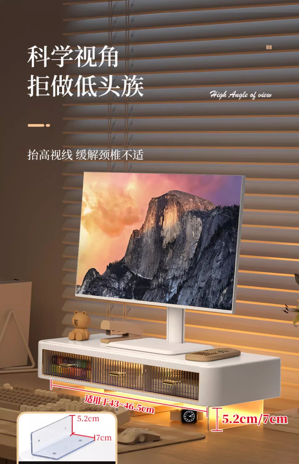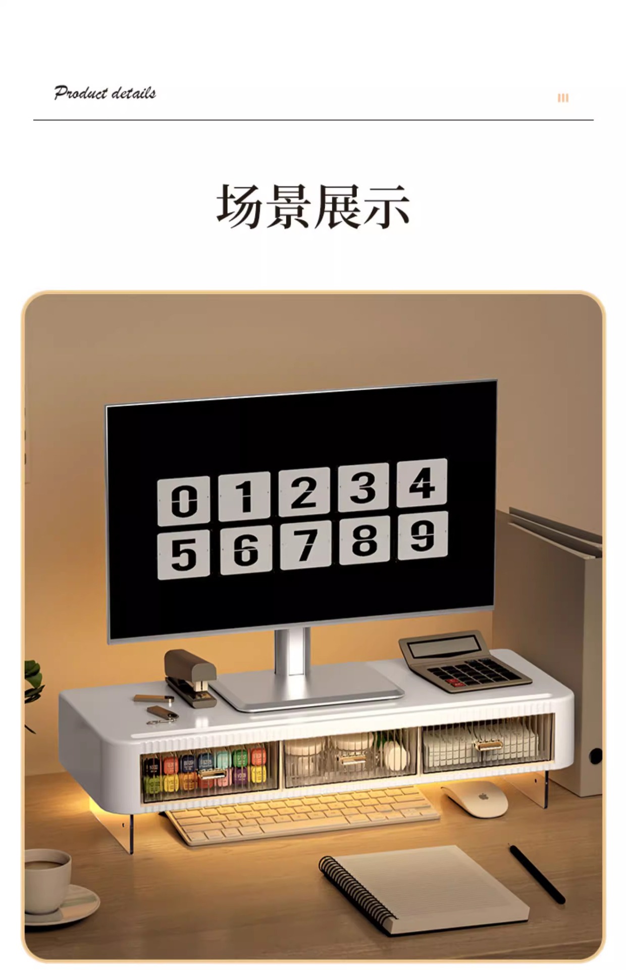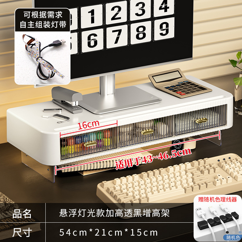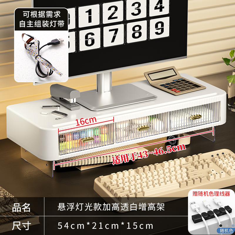 | 电脑增高架三抽格【带脚架带灯】 | 54*21*13.5 | 59*26.5*14 | 1.57 | 2.05 | 6 | / | / | 独立纸箱+气泡袋+护角 | 6个/捆 |