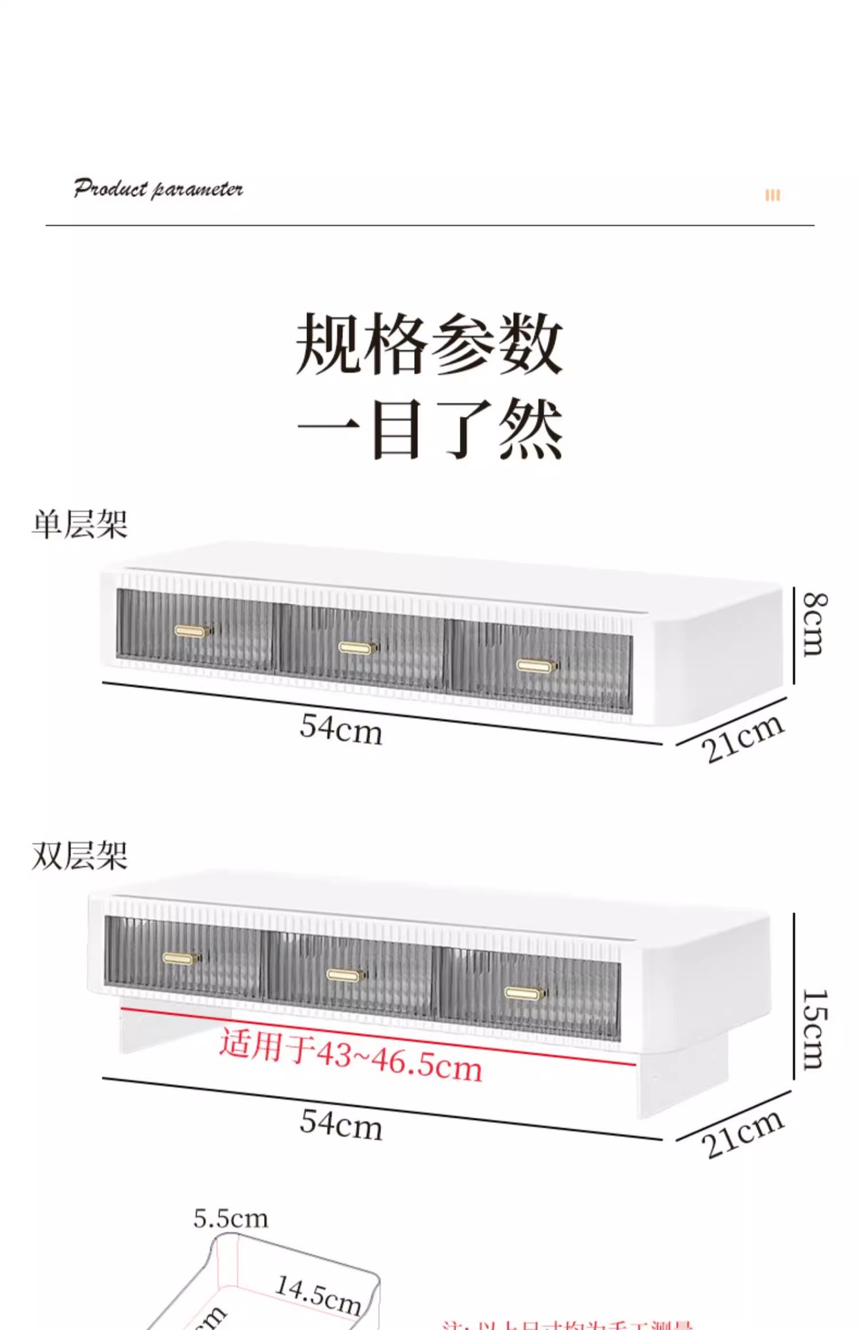 | 电脑增高架三抽格【带脚架】 | 54*21*13.5 | 59*26.5*14 | 1.55 | 2.03 | 6 | / | / | 独立纸箱+气泡袋+护角 | 6个/捆 |