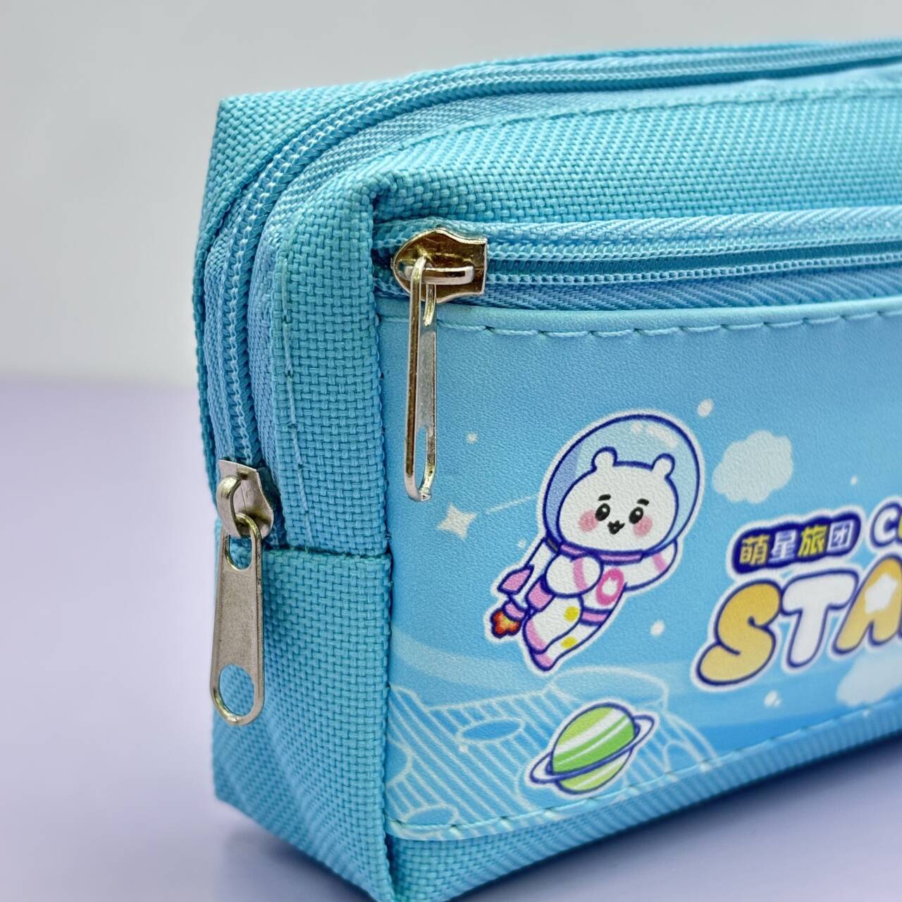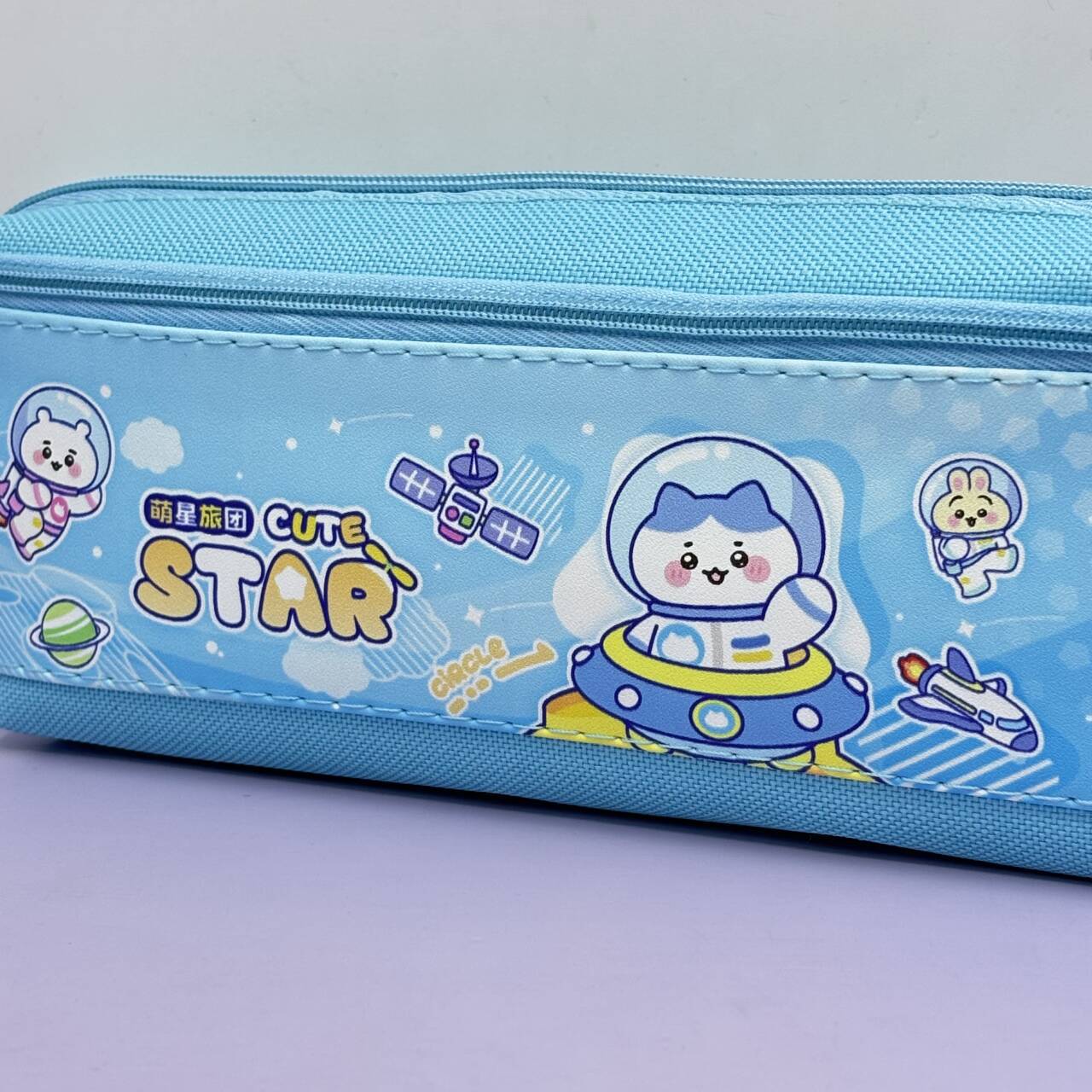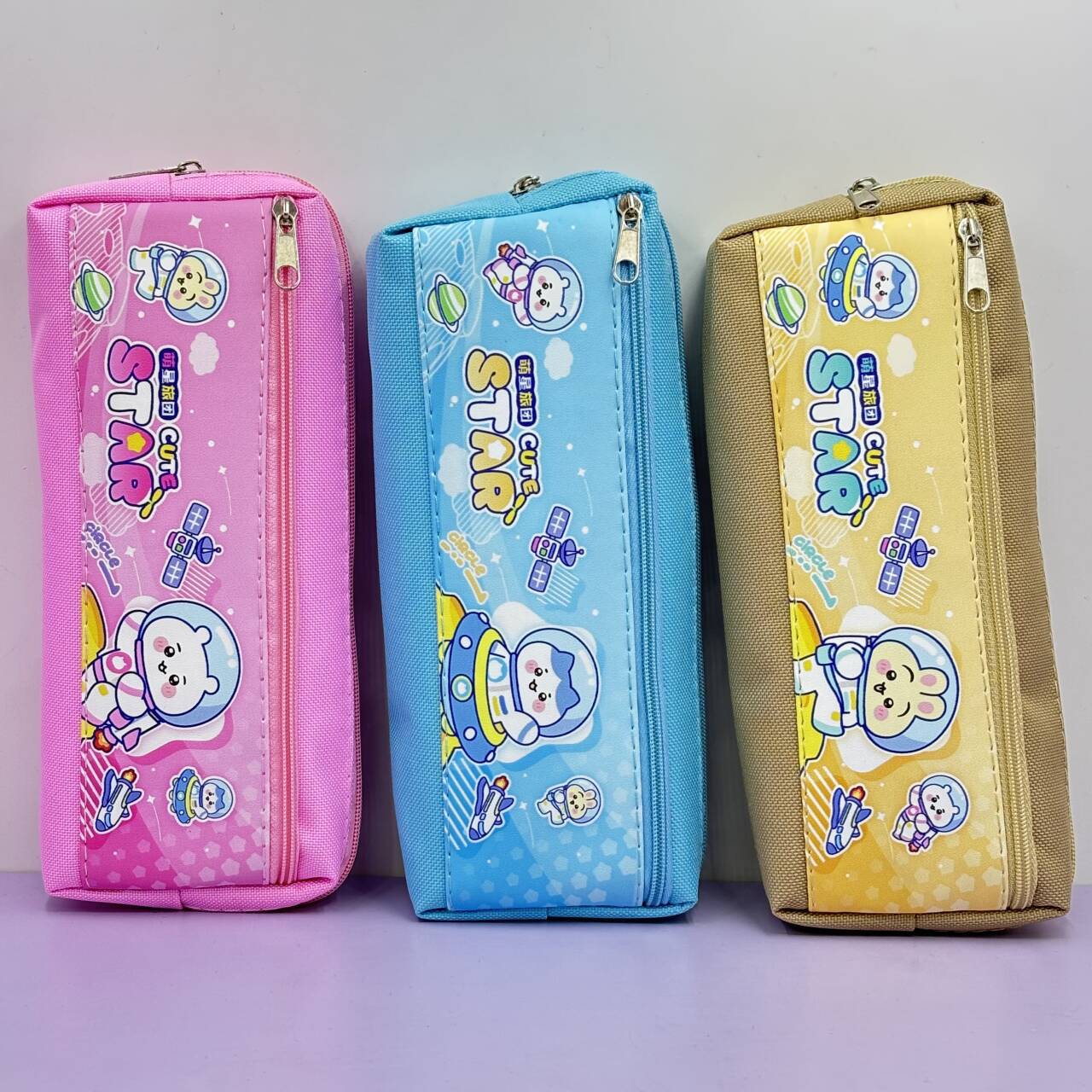 KD101 만화 학생 더블 레이어 캔버스 연필 가방 창조적 인 지퍼 아이스 소년과 소녀를위한 간단한 일본식 연필 가방