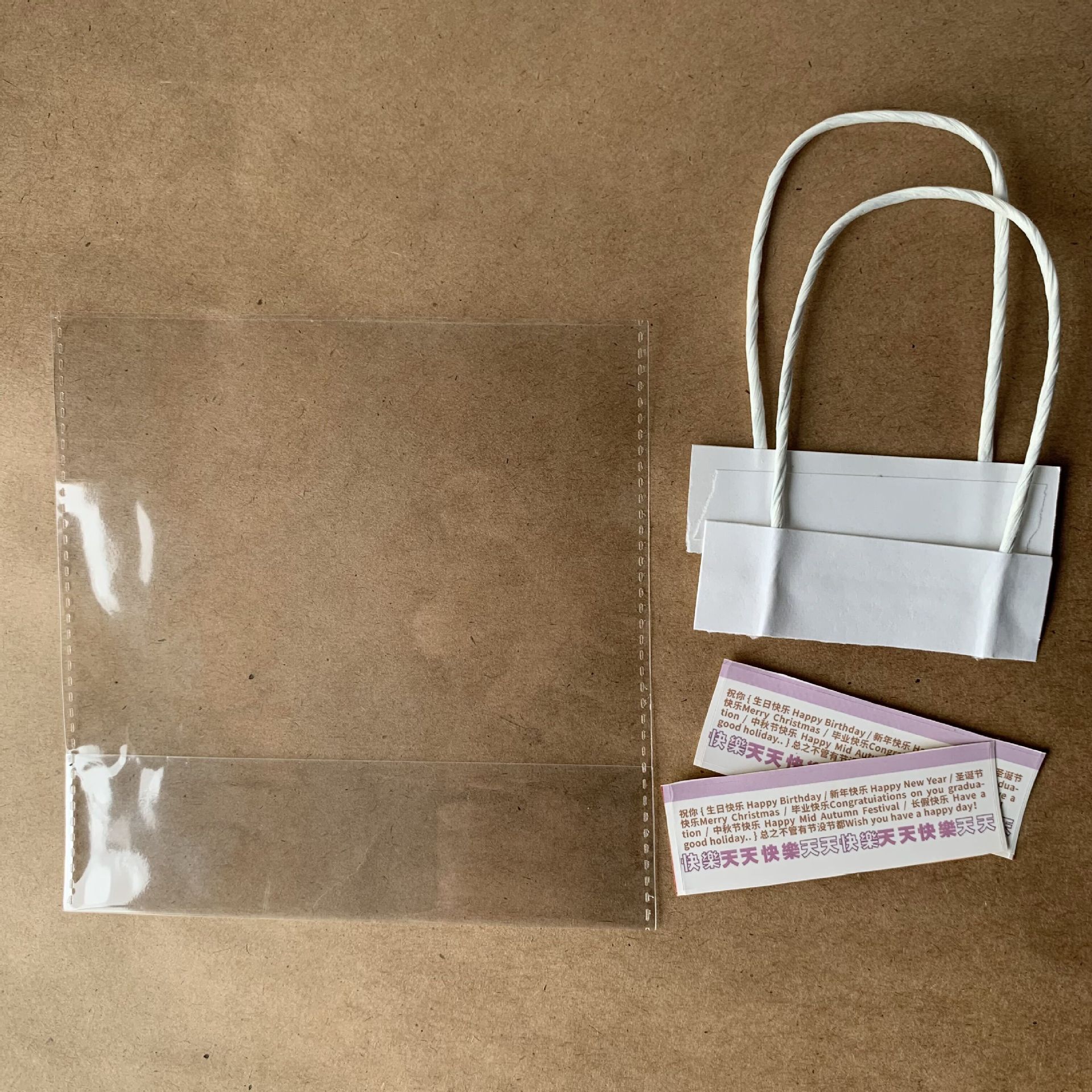 • 깜짝 선물-15x15+8cm 바닥, OPP+핸드 로프, 반제품(직접 붙여야 함)