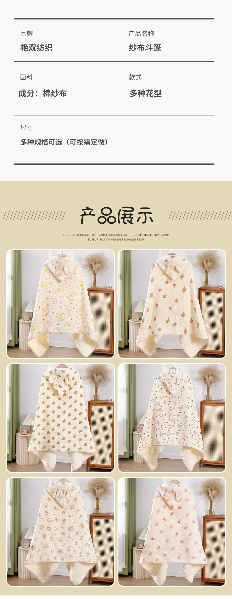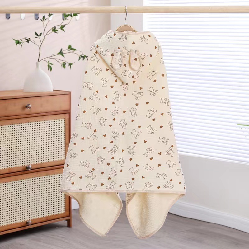 아기 망토 면 거즈 코팅 신생아 모자 포대기 수건 봄과 가을 어린이 웨어러블 목욕 수건 재고 도매