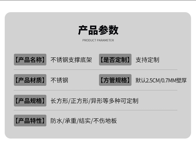 스테인레스 스틸 선반 스토리지 랙 플로어 스탠딩 브래킷 사각형 직사각형 증가 기본 수조 하단 랙 중장비 선반 단일 레이어