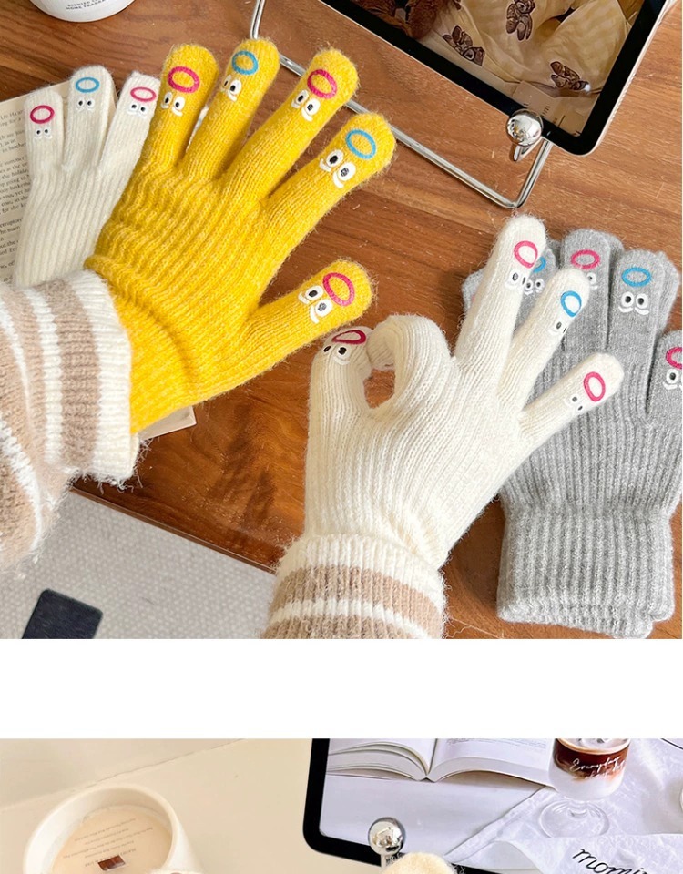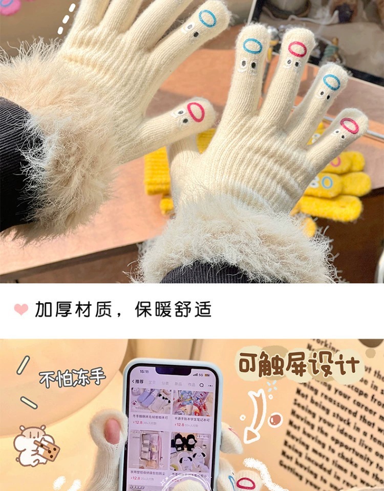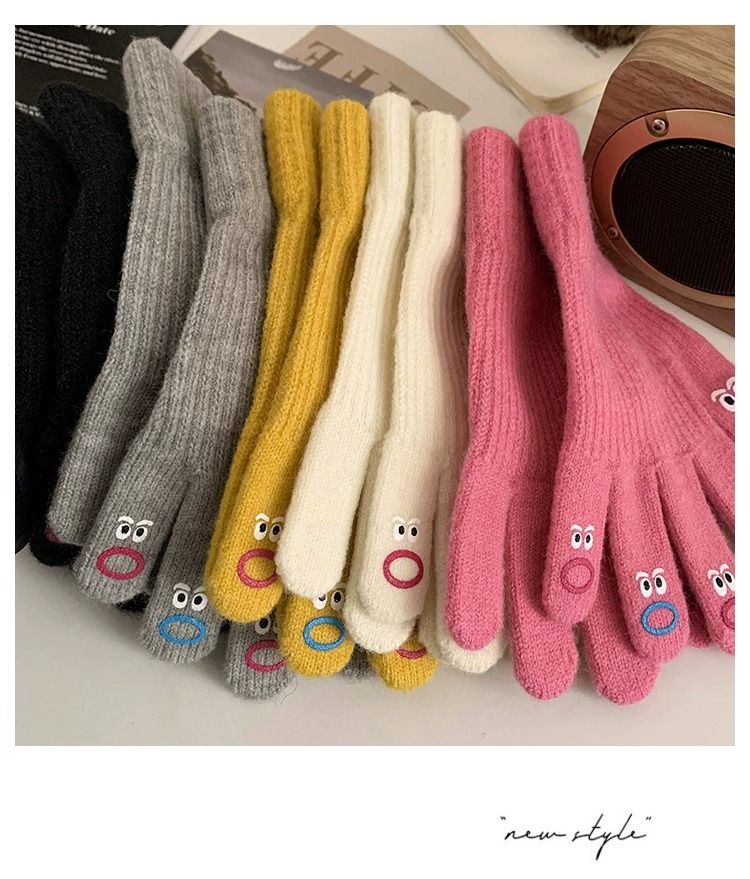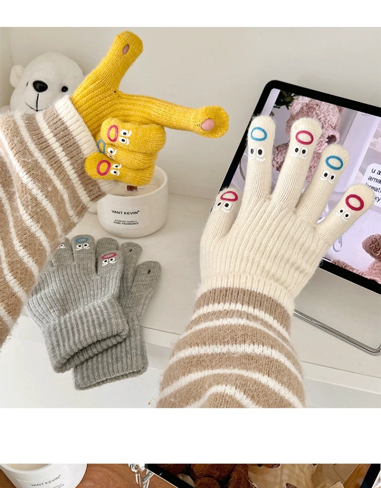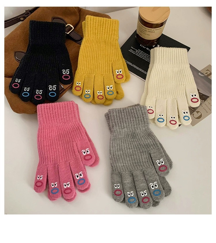 가을과 겨울 따뜻한 니트 장갑 학생 사이클링 크리 에이 티브 재미있는 인터넷 인기 다섯 손가락 표현 전체 손가락 장갑 터치 스크린