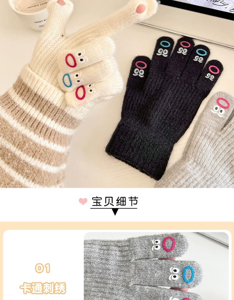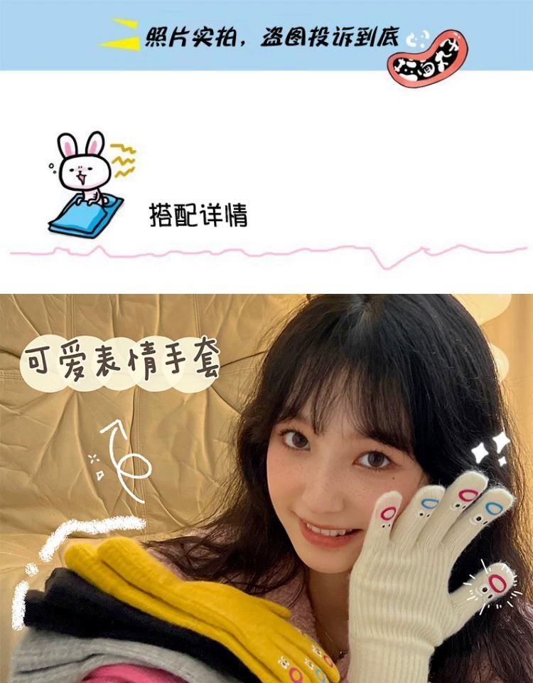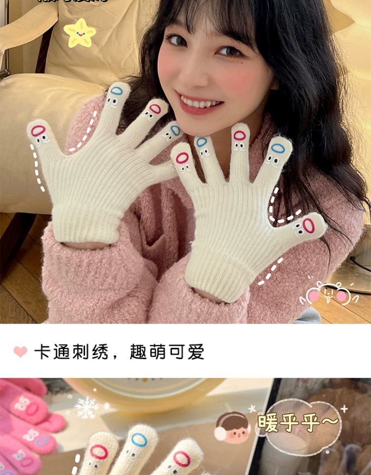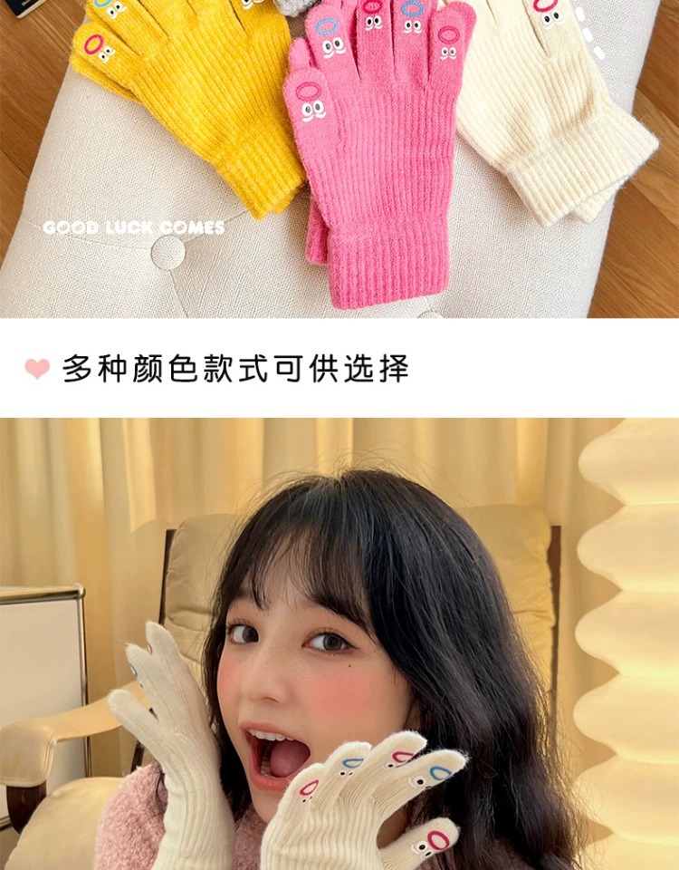 가을과 겨울 따뜻한 니트 장갑 학생 사이클링 크리 에이 티브 재미있는 인터넷 인기 다섯 손가락 표현 전체 손가락 장갑 터치 스크린