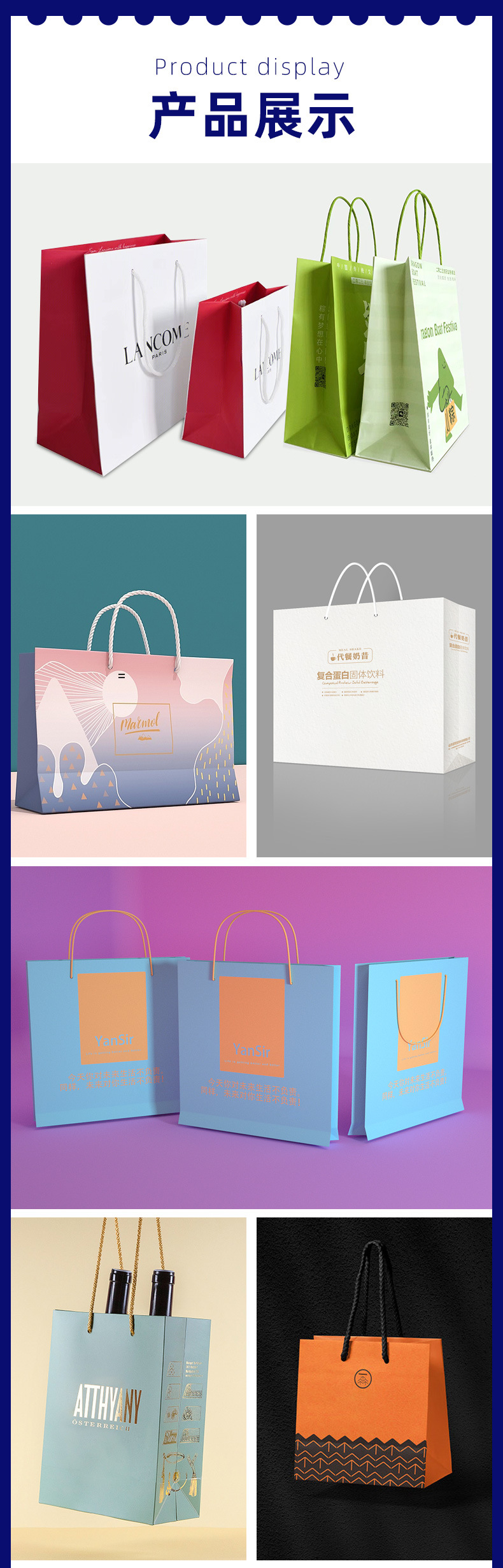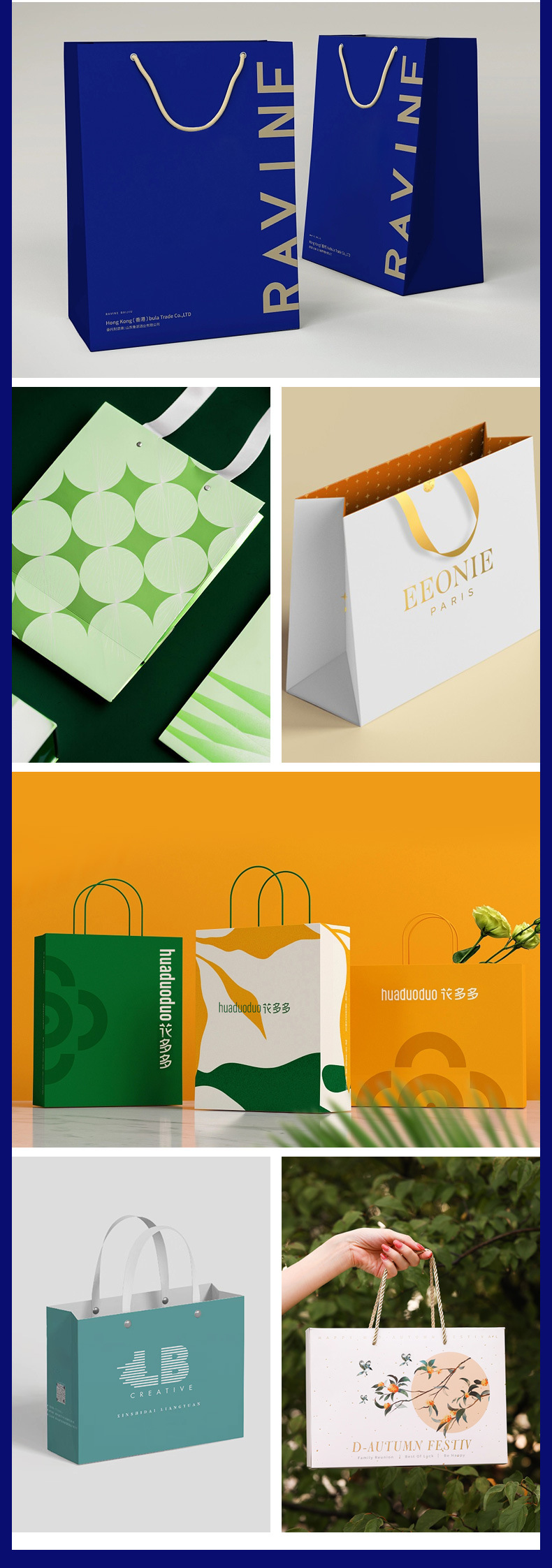 맞춤형 핸드백, 맞춤형 의류 가방, 고급 동반자 선물 가방, 쇼핑백, 흰색 판지 크래프트 종이 가방, 맞춤형